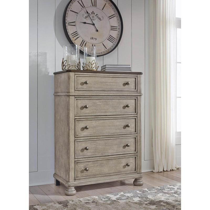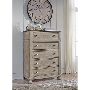 ASHLEY комод FALKHURST(коллекция AMERICAN LIFESTYLE).Стиль: американский Traditional.Тип: комод для спальни высокий с пятью выдвижными ящиками,верхние обиты фетром на открытых ножках.Цвет: серый/ коричневый.Отделка: в два тона шпон акации и ореха,металлическая фурнитура цвета тёмная бронза.Размеры,мм:ш.915/г.457/в.1270.