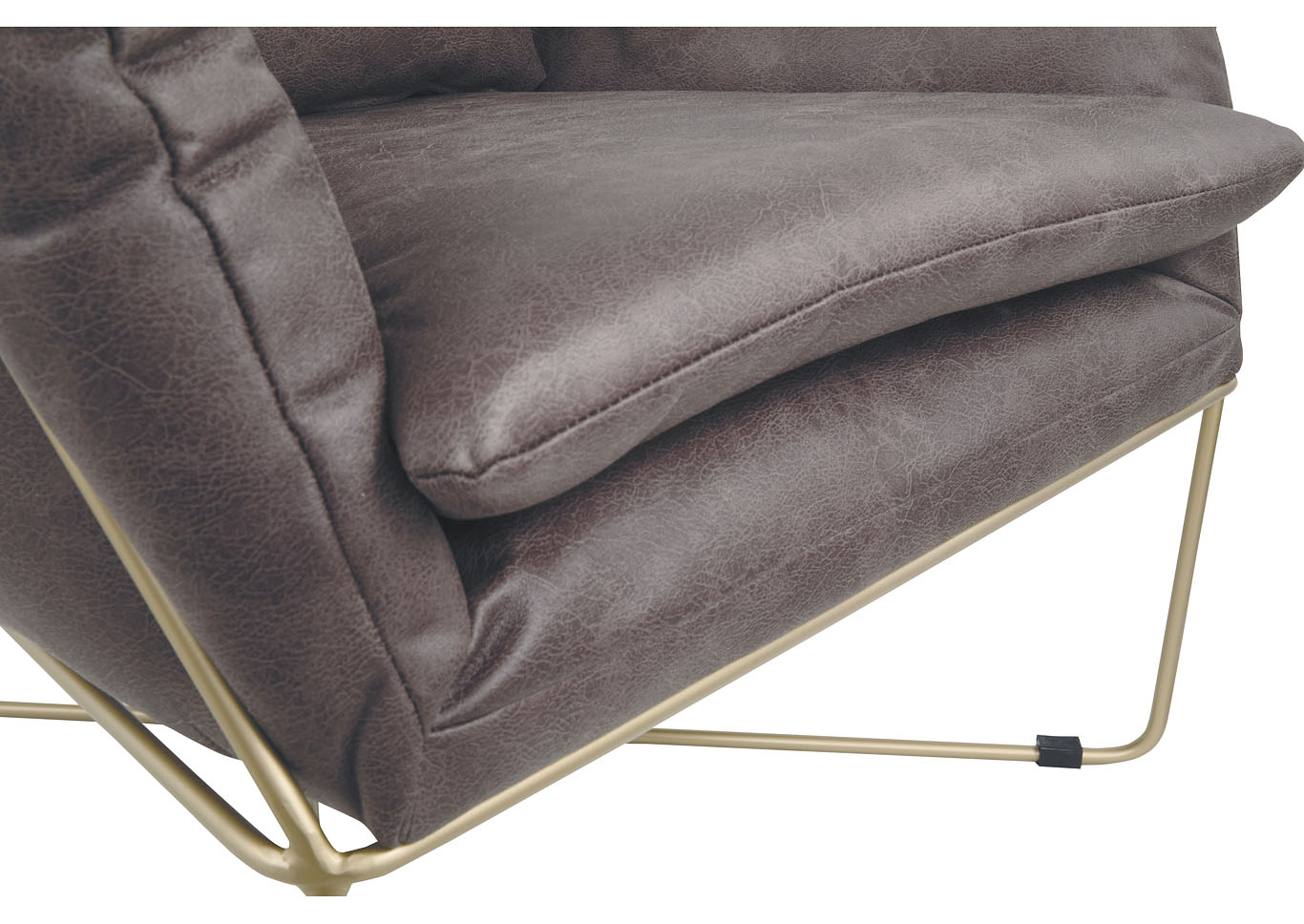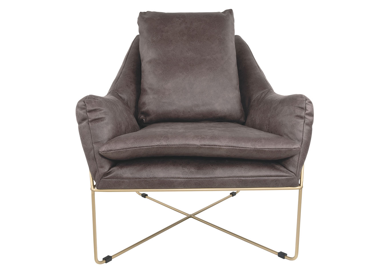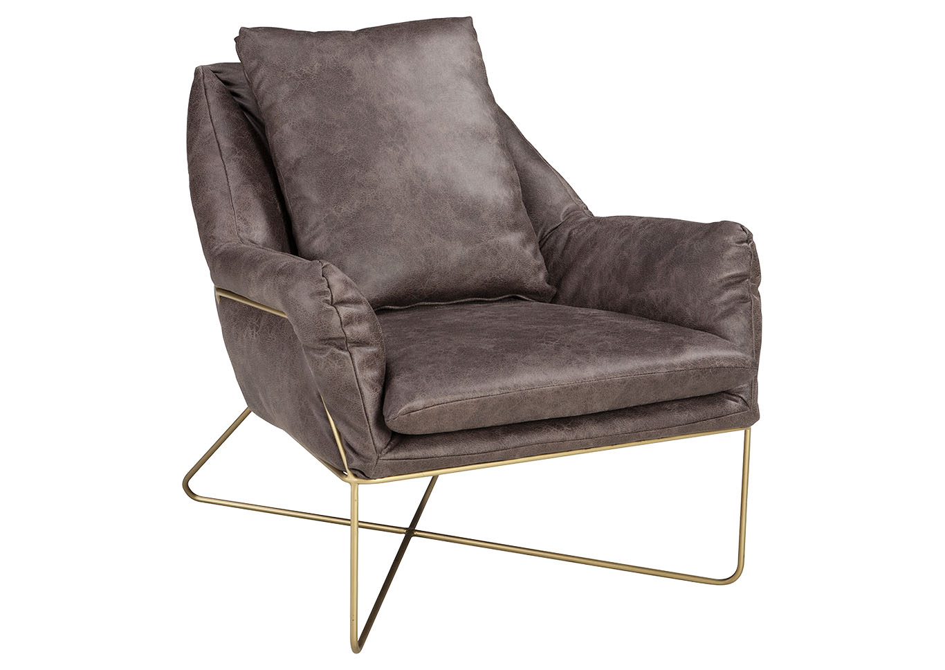 ASHLEY кресло CROSSHAVEN(коллекция AMERICAN LIFESTYLE).Стиль:американский Modern.Тип:акцентное кресло с открытой x-образной металлической рамой и свободными подушками.Цвет:тёмно-серый.Обивка:ткань(экокожа) 100% полиэстер,категория высшая,одобрена по высоким американским стандартам качества AHFA(износостойкость,долговечность).Отделка:античное золото.Размеры,мм:ш.800/г.876/в.876.