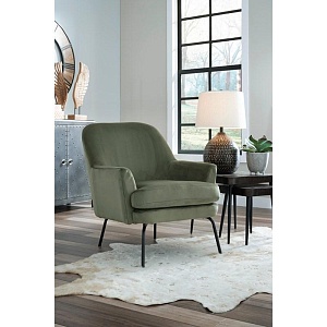 ASHLEY кресло DERICKA (коллекция AMERICAN LIFESTYLE).Стиль: американский Modern.Тип: акцентное кресло на открытых металлических ножках.Цвет: зелёный.Обивка: ткань бархатной фактуры 100% полиэстер,категория высшая,одобрена по высоким американским стандартам качества AHFA(износостойкость,долговечность).Размеры,мм:ш.724/г.864/в.832.