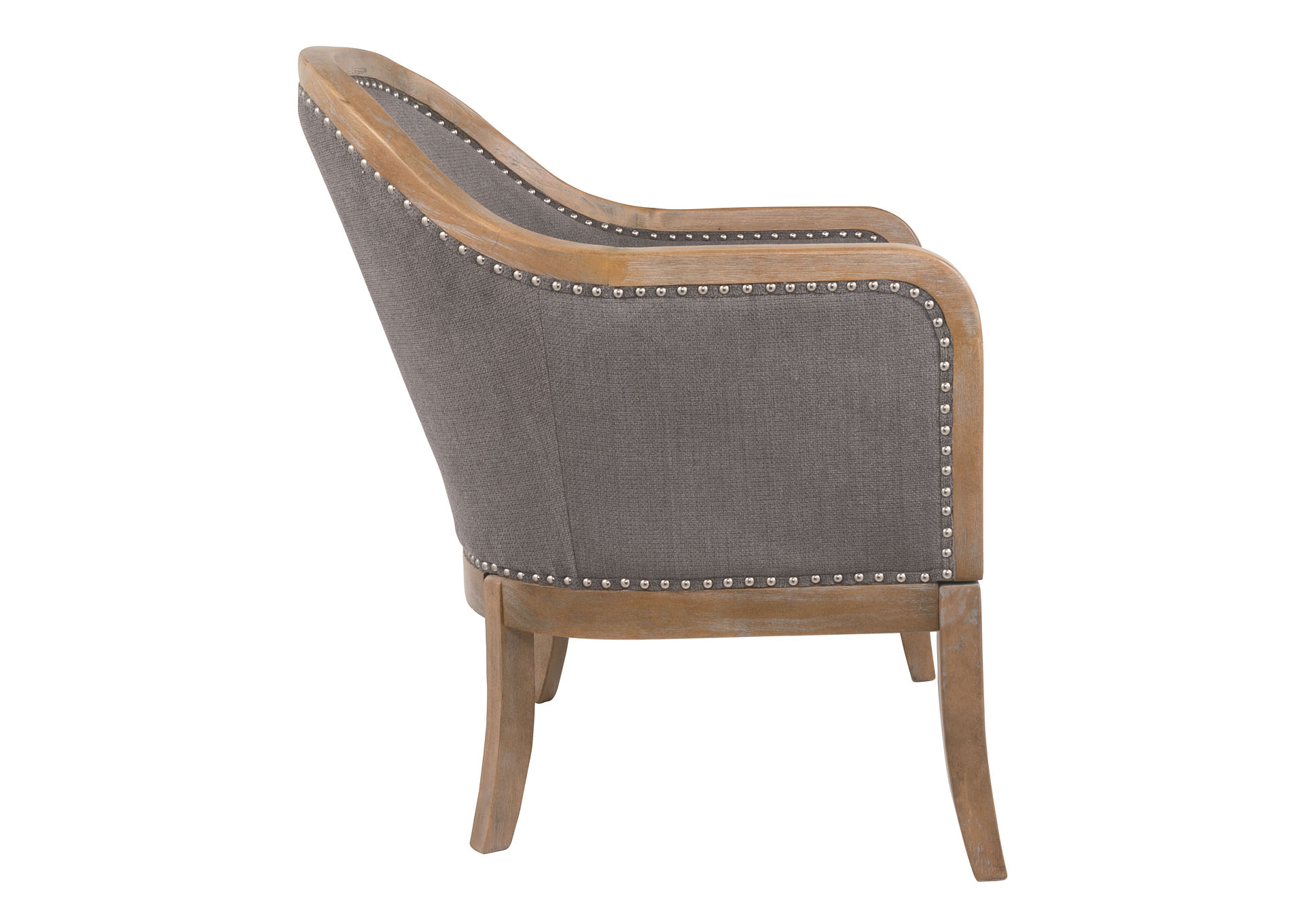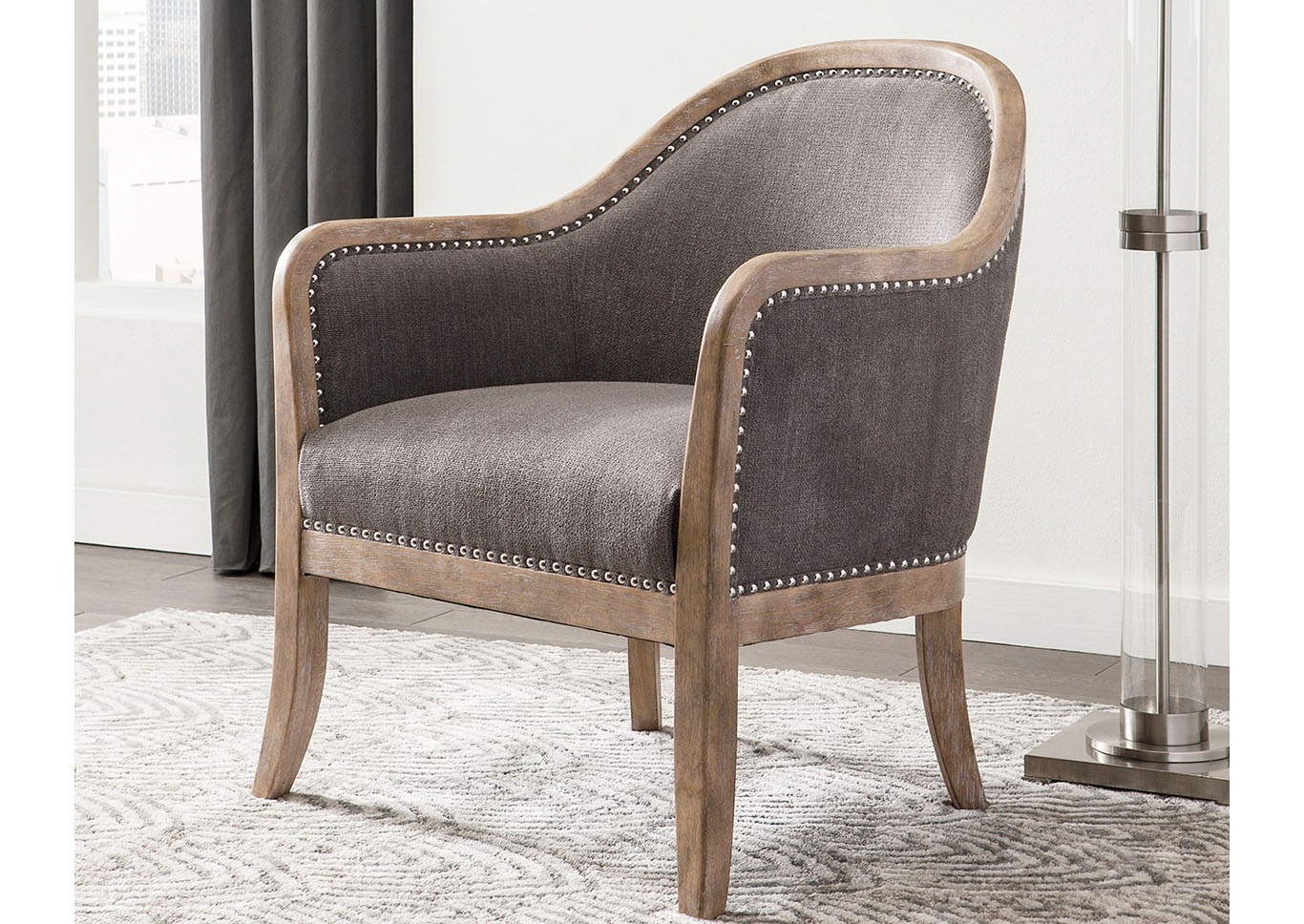 ASHLEY кресло ENGINEER (коллекция AMERICAN LIFESTYLE).Стиль: американский Modern.Тип: акцентное кресло на открытом деревянном основании с фиксированным углом.Цвет: серо- коричневый.Обивка: сложнофактурная ткань 100% полиэстер,категория высшая,одобрена по высоким американским стандартам качества AHFA(износостойкость,долговечность).Отделка: искусственно состаренная; кант из металлических мебельных гвоздей.Размеры,мм:ш.720/г.720/в.840.