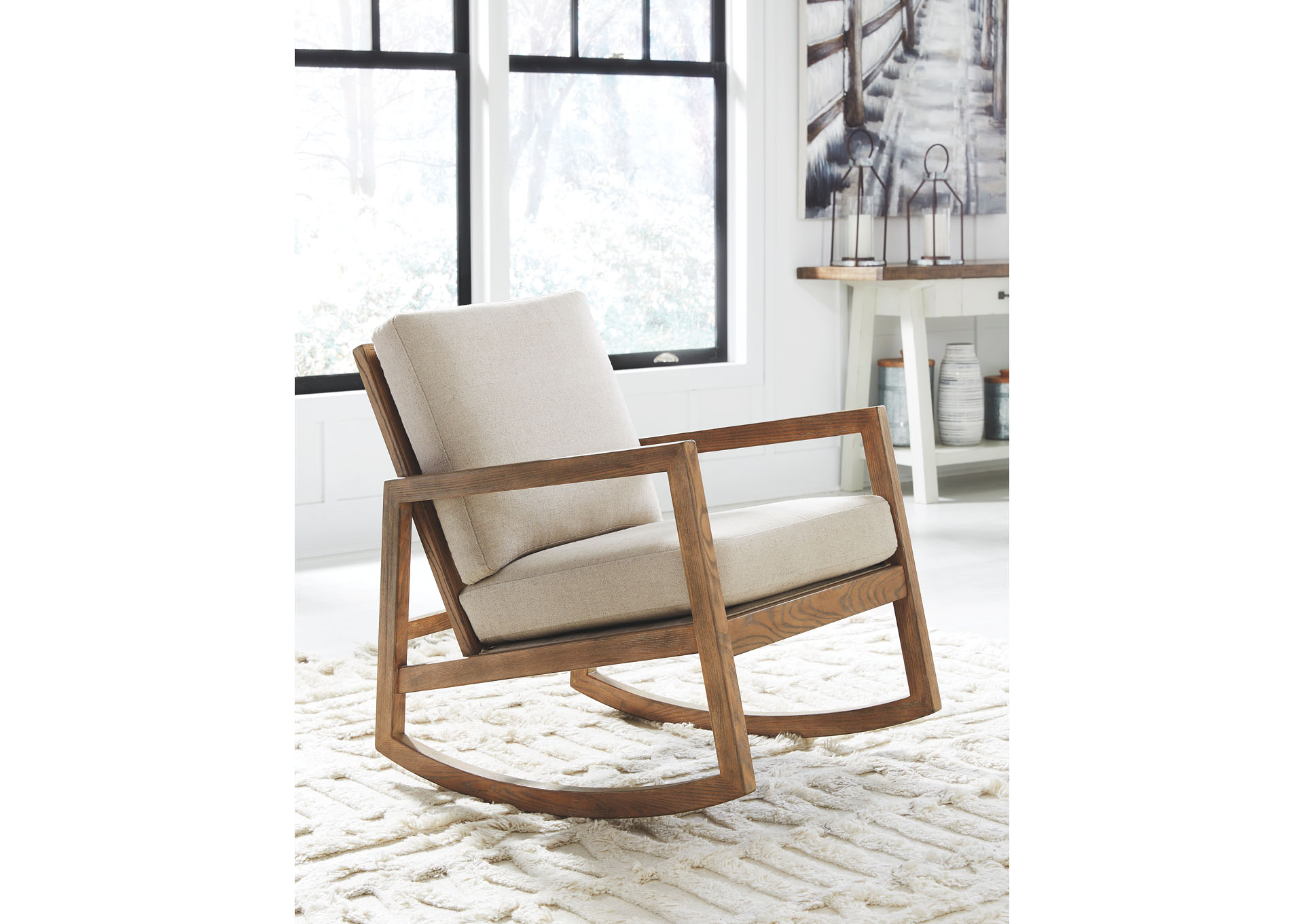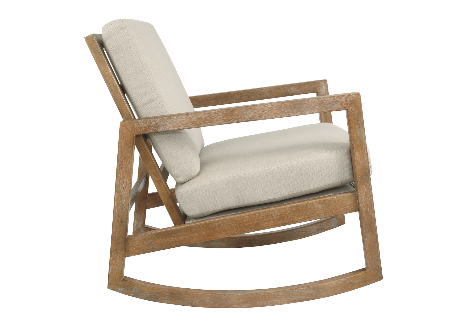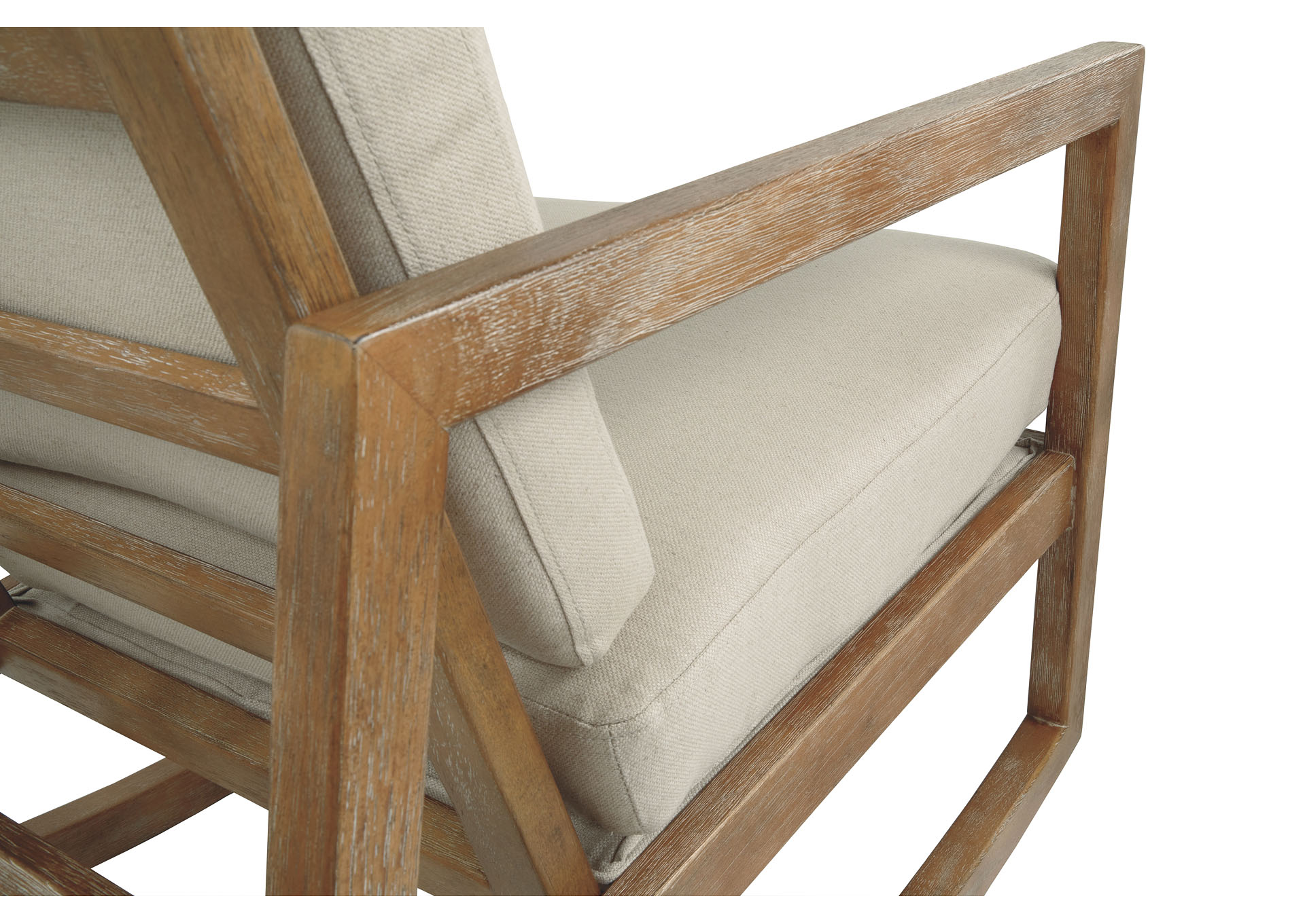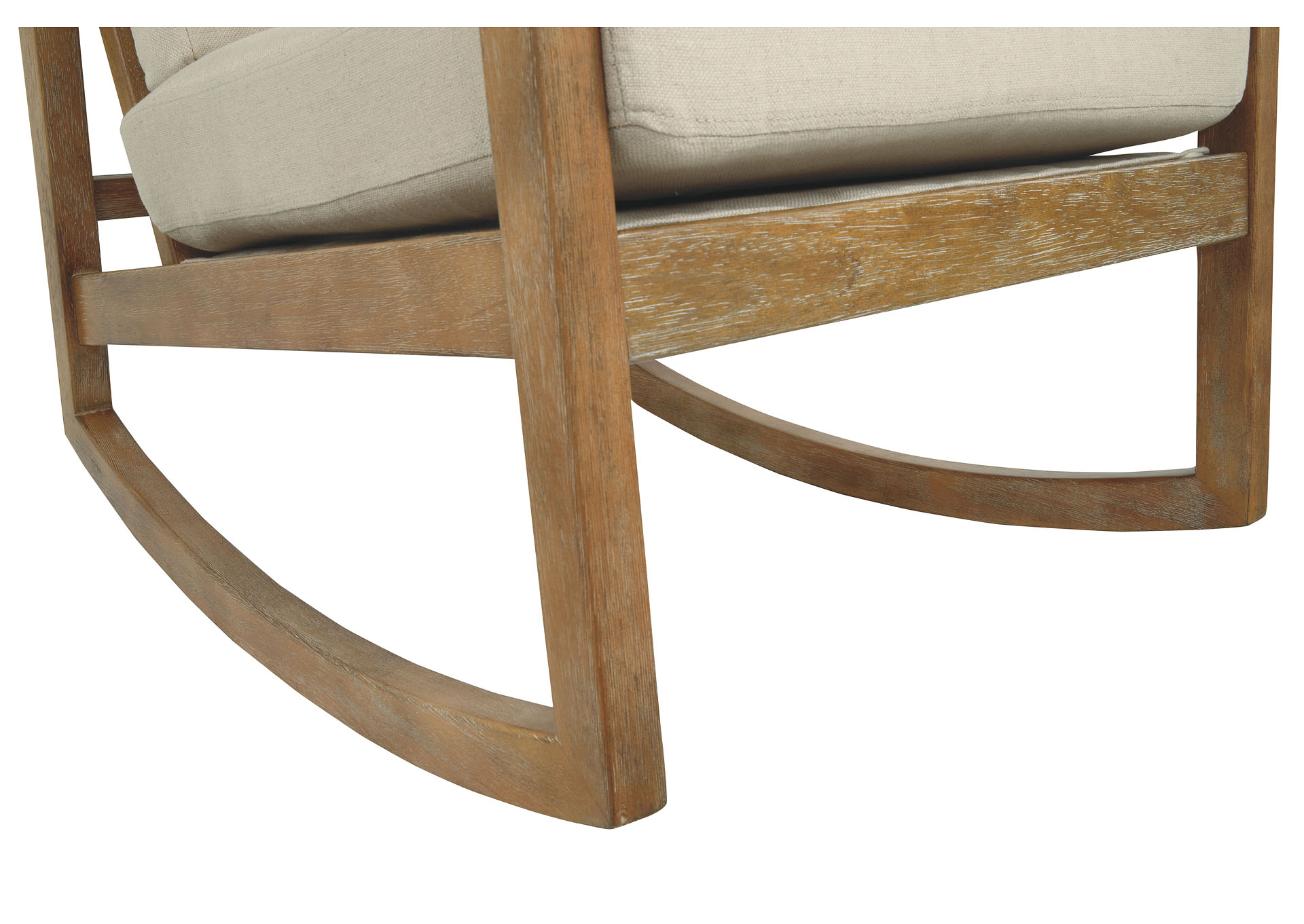 ASHLEY кресло NOVELDA (коллекция AMERICAN LIFESTYLE).Стиль: американский Casual.Тип: акцентное кресло - качалка на открытом деревянном основании с фиксированным углом.Цвет: светло-бежевый.Обивка: сложнофактурная,натуральная смесовая ткань(70% лён;30% хлопок),категория высшая,одобрена по высоким американским стандартам качества AHFA(износостойкость,долговечность).Размеры,мм:ш.648/г.838/в.807.