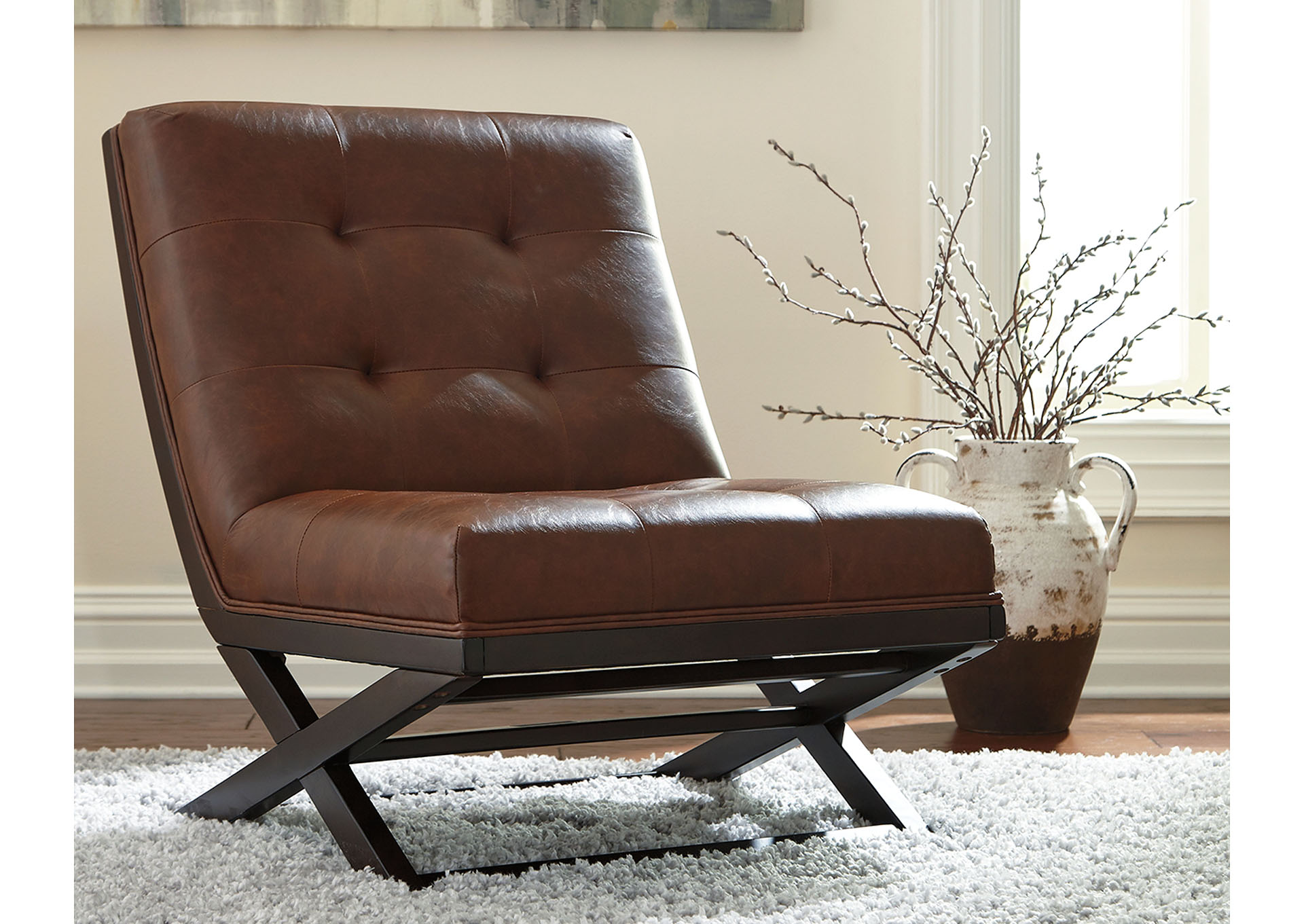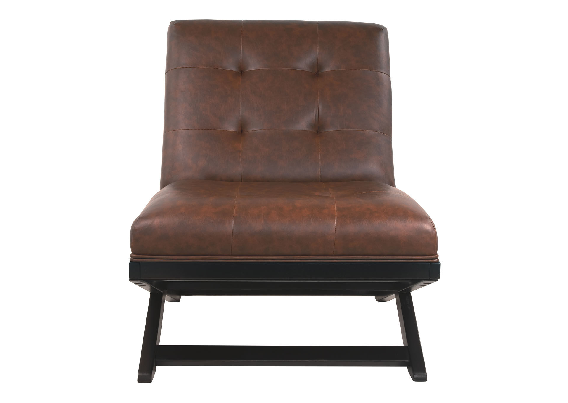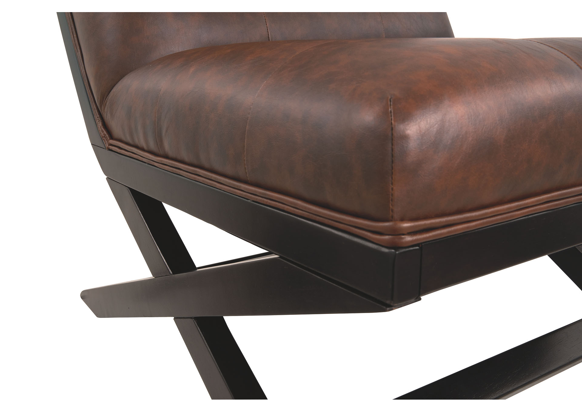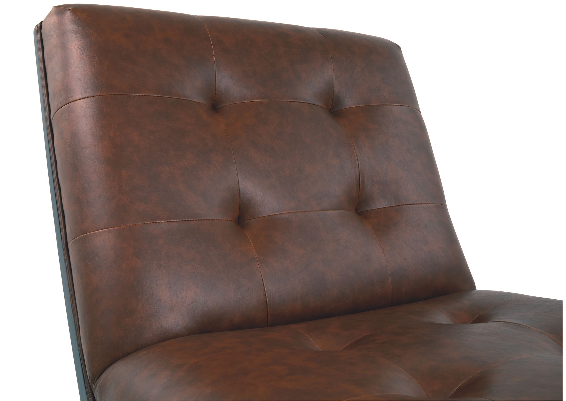 ASHLEY кресло SIDEWINDER (коллекция AMERICAN LIFESTYLE).Стиль: американский Casual .Тип: акцентное кресло без подлокотников с ножницеобразным,деревянным открытым основанием.Цвет: коричневый.Обивка: экокожа( 67% пвх; 23% полиэстер;10% pu),категория высшая,одобрена по высоким американским стандартам качества AHFA(износостойкость,долговечность).Отделка: тафтинг.Размеры,мм:ш.711/г.893/в.861.