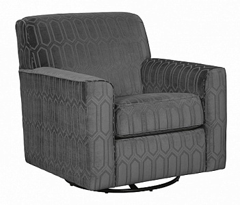 ASHLEY кресло ZARINA ( коллекция AMERICAN LIFESTYLE).Стиль: американский Urbanology.Тип: поворотное( 360 град.) акцентное кресло, с рельефным геометрическим дизайном, открытыми ножками и свободной подушкой.Цвет: тёмно-серый( графит).Обивка: сложнофактурная ткань,100% полиэстер,категория высшая,одобрена по высоким американским стандартам качества AHFA( износостойкость,долговечность).Размеры,мм: ш.914/г.991/в.914.