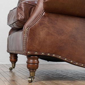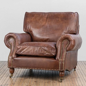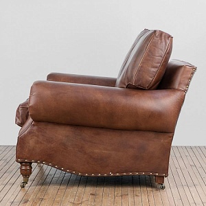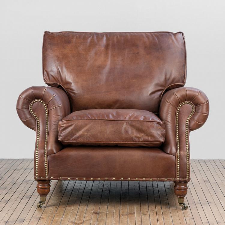 HALO EST.1976 кресло BALMORAL ( дизайн Timothy Oulton) .Стиль: British classic.Тип: кресло для гостиной на роликах.Цвет: коричневый.Обивка:100% кожа Antigue Whisky - состаренная мягкой структуры анилиновая кожа буйвола уникальной ручной выделки тёплого коричневого цвета.Отделка: латунные мебельные гвозди.Размеры,мм: ш.1070/г.1080/в.950.