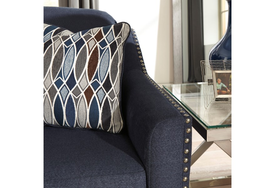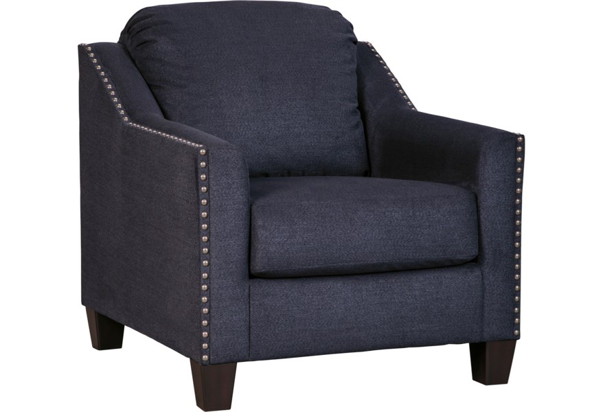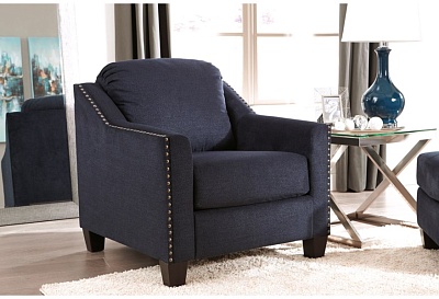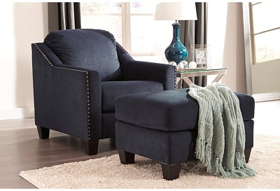 ASHLEY кресло CREEAL HEIGHTS( коллекция AMERICAN LIFESTYLE).Стиль: американский Contemporary Living.Тип: кресло для гостиной с угловой рамой,открытыми ножками и свободной подушкой.Цвет:тёмно-синий.Обивка: сложнофактурная ткань,100% полиэстер,категория высшая,одобрена по высоким американским стандартам качества AHFA( износостойкость,долговечность).Отделка: металлические мебельные гвозди.Размеры,мм: ш.889/г.914/в.940.