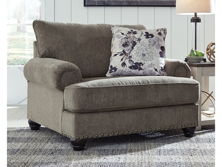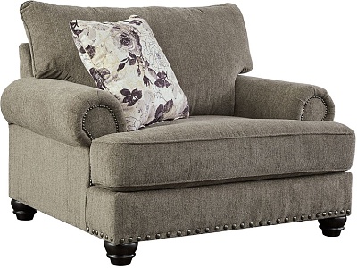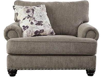 ASHLEY кресло SEMBLER ( коллекция AMERICAN LIFESTYLE).Стиль: американский Casual.Тип: кресло полуторное для гостиной с одной декоративной подушкой в комплекте.Цвет: серый.Обивка: сложнофактурная ткань,100% полиэстер,категория высшая,одобрена по высоким американским стандартам качества AHFA(износостойкость,долговечность).Отделка: чёрные, никелированные, декоративные металлические мебельные гвозди.Размеры.мм:ш.1321/г.1142/в.1067.