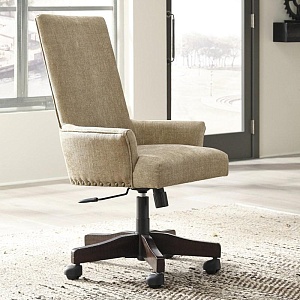 ASHLEY кресло BALDRIDGE (коллекция AMERICAN LIFESTYLE).Стиль:американский Casual.Тип: мягкое кресло с подлокотниками для кабинета,ручная регулировка наклона и высоты,поворот на 360 градусов,ролики для перемещения.Цвет: бежевый.Обивка: сложнофактурная ткань 100% полиэстер,одобрена по высоким американским стандартам качества AHFA(износостойкость,долговечность).Отделка: декоративные мебельные гвозди.Размеры,мм:ш.629/г.762/в.1111.