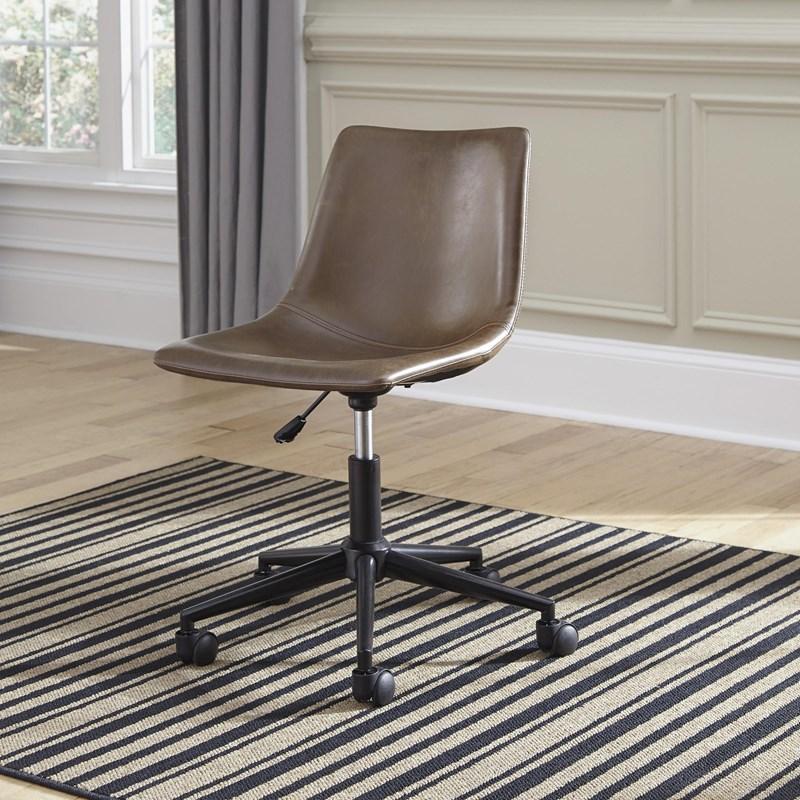 ASHLEY кресло OFFICE CHAIR PROGRAM (коллекция AMERICAN LIFESTYLE).Стиль: американский Casual.Тип: ковшеобразное кресло для кабинета, с ручной регулировкой наклона и высоты,поворот на 360 градусов,ролики для перемещения.Цвет: коричневый .Обивка: экокожа 100% полиэстер,одобрена по высоким американским стандартам качества AHFA(износостойкость,долговечность).Отделка: гладкая металлическая основа с чёрным поришковым покрытием.Размеры,мм:ш.460/г.500/в.870.