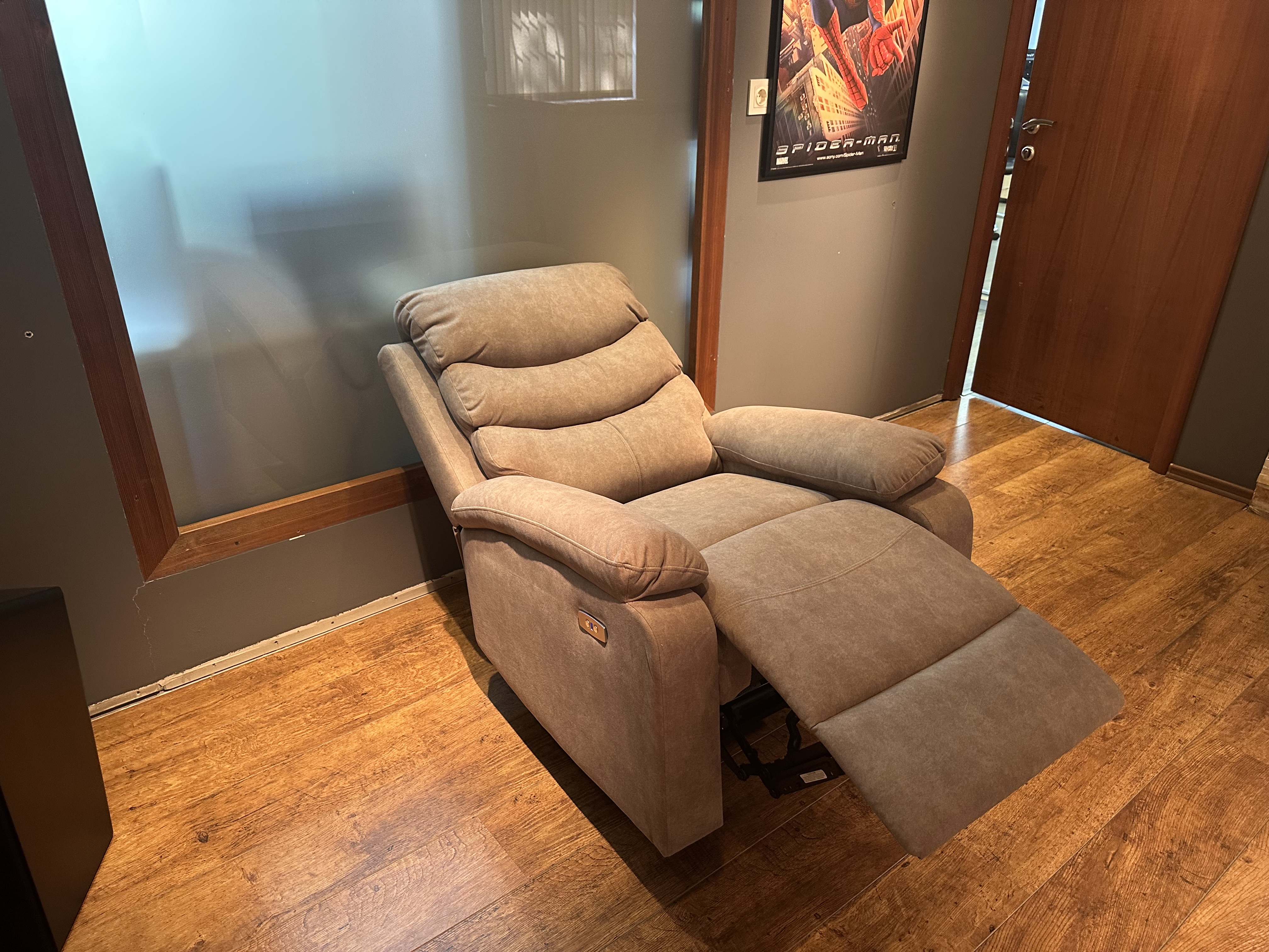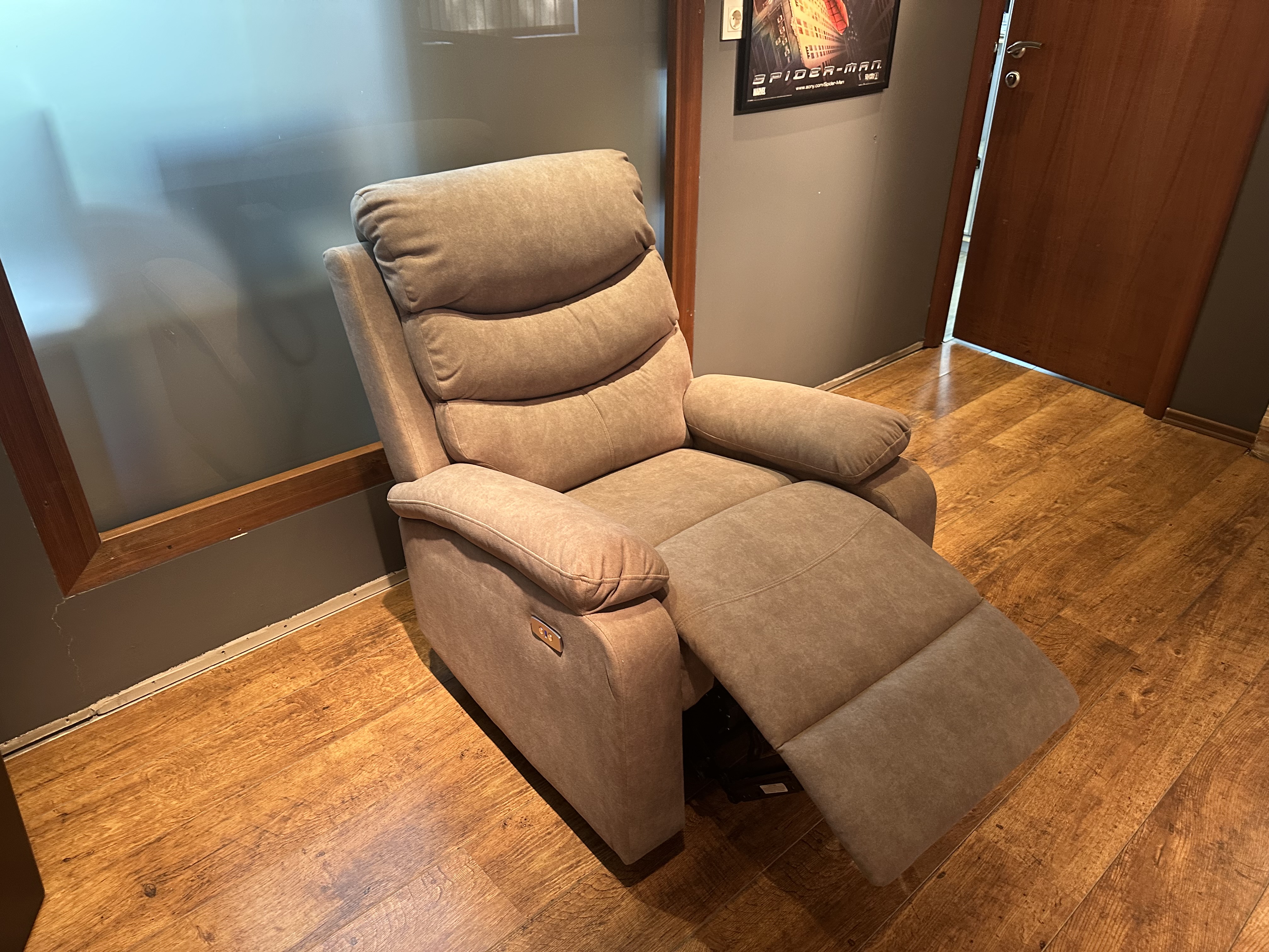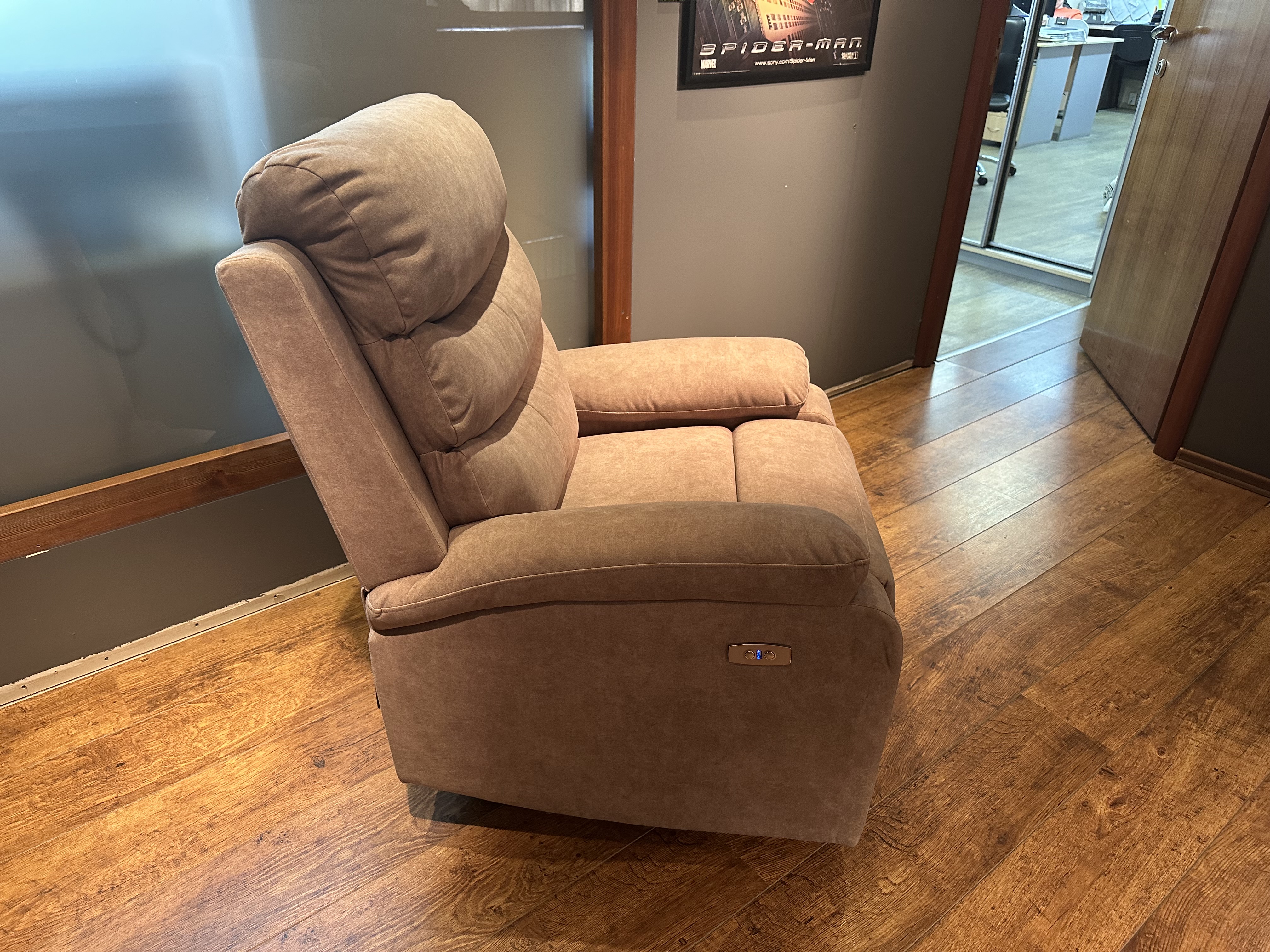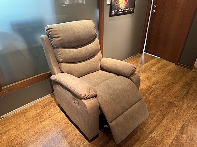 COMFORT LOUNGE кресло BUFEITE-4 BROWN.Тип: кресло-реклайнер с электроприводом,USB,управление положениями в одно касание,регулируемые положения.Цвет: коричневый.Обивка: велюр,устойчивый к царапинам.Наполнение: пенополиуритан,холлофайбер.Размеры,мм:ш.820/г.910/в.1030.