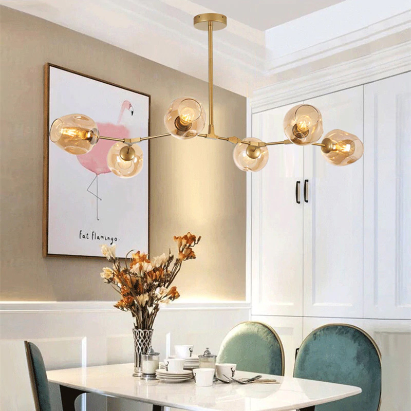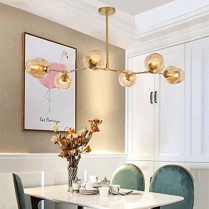 DELIGHT COLLECTION люстра BUBBLE.Стиль: Modern.Тип: люстра восьмиламповая со стеклянными плафонами напоминающими ветку дерева .Цвет: янтарный/золотой.Отделка: цвет основания золото; прозрачное янтарное стекло.Размеры,мм: ш.1800/в.460.