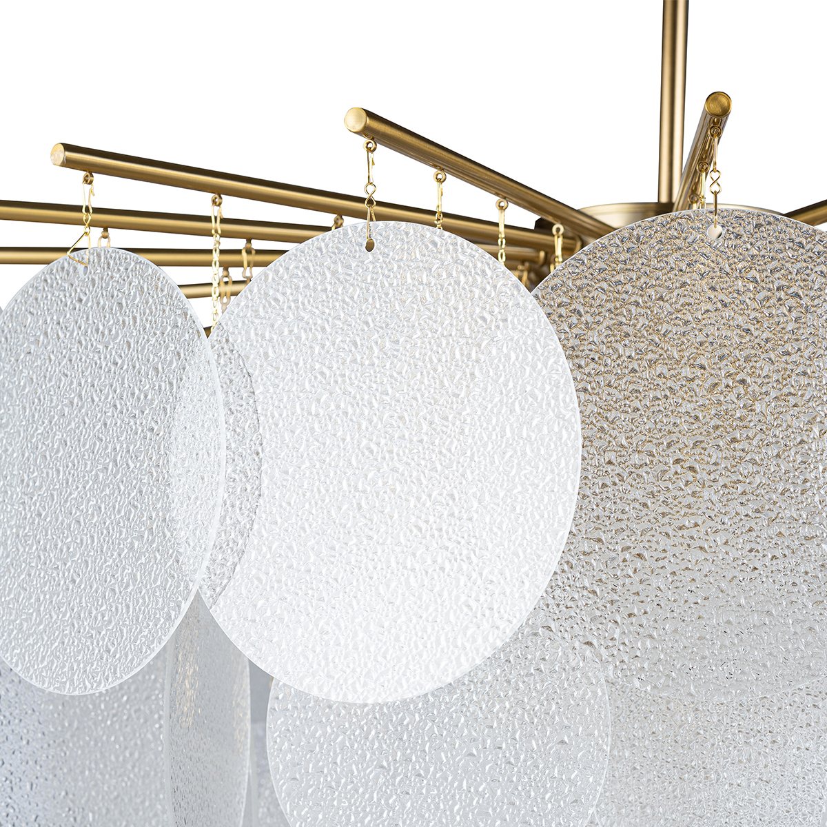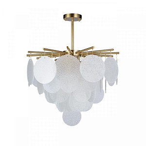 LOFT IT люстра FROST.Стиль: Modern.Тип: люстра с подвесками в виде круглых стеклянных пластин.Цвет: прозрачный.Отделка: цвет основания латунь.Размеры,мм: ш.600/г.600/в.860.