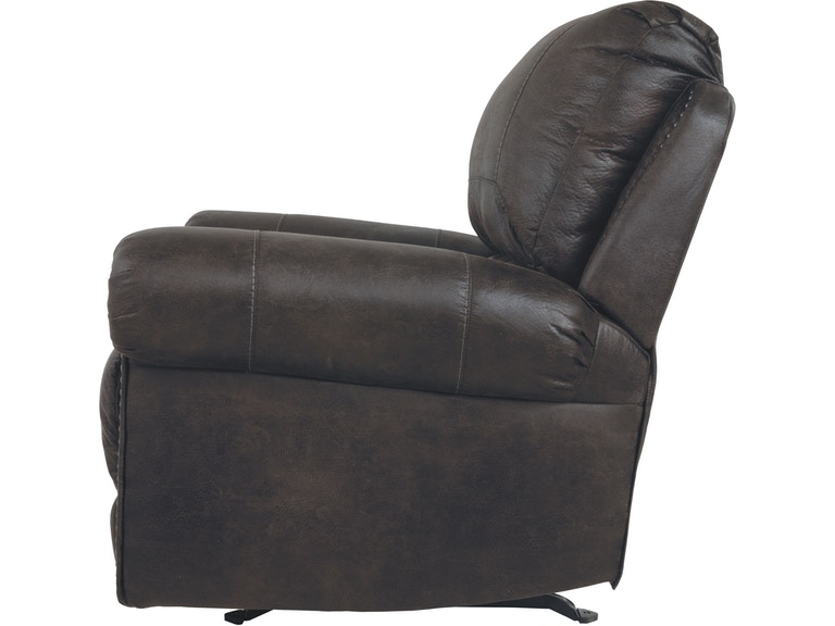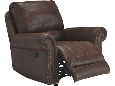 ASHLEY кресло BREVILLE( коллекция AMERICAN LIFESTYLE) .Стиль: американский Vintage Casual .Тип: кресло-качалка реклайнер с механическим приводом.Цвет: доступны: тёмно-серый/коричневый.Обивка: 3% экокожа;97% полиэстер( ткань),категория высшая,одобрена по высоким американским стандартам качества AHFA(износостойкость,долговечность).Отделка:декоративные металлические мебельные гвозди.Размеры,мм:ш.1090/г.1020/в.1020.