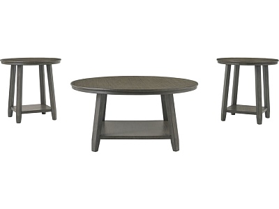 ASHLEY набор CAITBROOK ( коллекция AMERICAN LIFESTYLE).Стиль: американский Modern.Тип: набор круглых столов: журнальный+два приставных с одной открытой фиксированной полкой каждый.Цвет: серый.Отделка: искусственно состаренная; шпон акации.Размеры,мм: журнальный (ш.1020/г.1020/в.483.); приставной( ш.604/г.604/в.324.)
