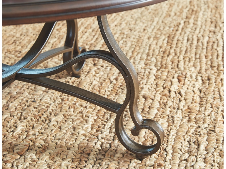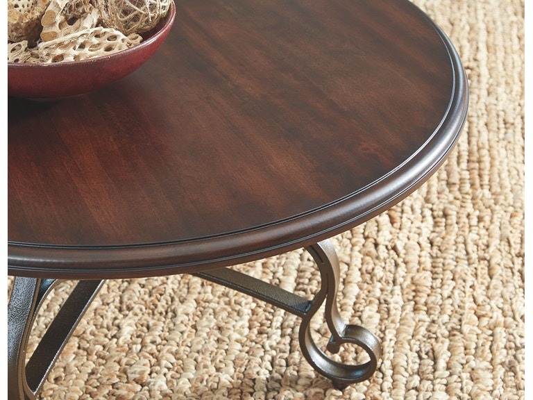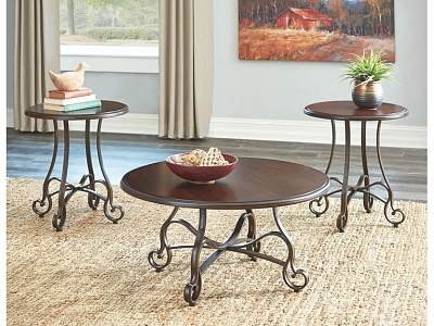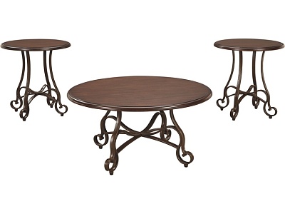 ASHLEY набор CARSHAW (коллекция AMERICAN LIFESTYLE).Стиль: американский New Traditional.Тип: набор круглых столов: журнальный + два приставных с гнутыми металлическими ножками.Цвет: коричневый.Отделка: шпон берёзы,античная бронза.Размеры,мм: журнальный(ш.914/г.914/в.470)/приставной(ш.560/г.560/в.616).