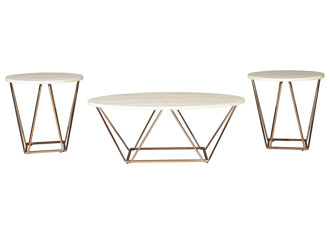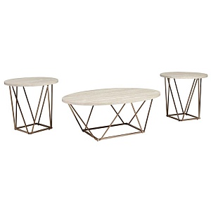 ASHLEY набор TARICA (коллекция AMERICAN LIFESTYLE).Стиль: американский Modern.Тип: набор столов: овальный журнальный + два круглых приставных с металлическим основанием.Цвет: двухцветный.Отделка: искусственный мрамор;золото.Размеры,мм: журнальный(ш.1194/г.791/в.457);приставной(ш.610/г.610/в.610).