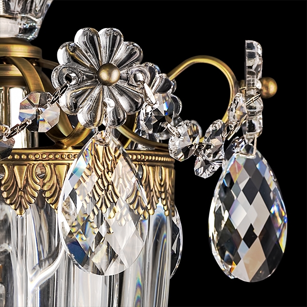 LIGHTSTAR S.R.L. светильник SCHON.Стиль: Art-Deco.Тип: однорожковый ,одноламповый светильник(бра),с одним плафоном.Цвет: бронза.Отделка: бронза,прозрачные хрустальные подвески и чашка.Размеры,мм:в.320/г.260/ш.210.