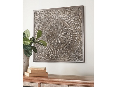 ASHLEY панно BRIONY (коллекция AMERICAN WALL DECOR).Стиль: американский Modern.Тип: деревянное квадратное панно украшенное цветочным узором в виде медальона .Цвет: серый.Отделка: искусственно состаренная.Размеры,мм:ш.914/г.51/в.914.