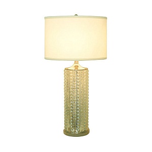 GRAMERCY HOME лампа KELSIE.Стиль: Modern.Тип: лампа настольная со стеклянным основанием и текстильным абажуром.Цвет: прозрачный/белый.Отделка: хром; кракелюр.Размеры.мм:ш.400/г.400/в.790.