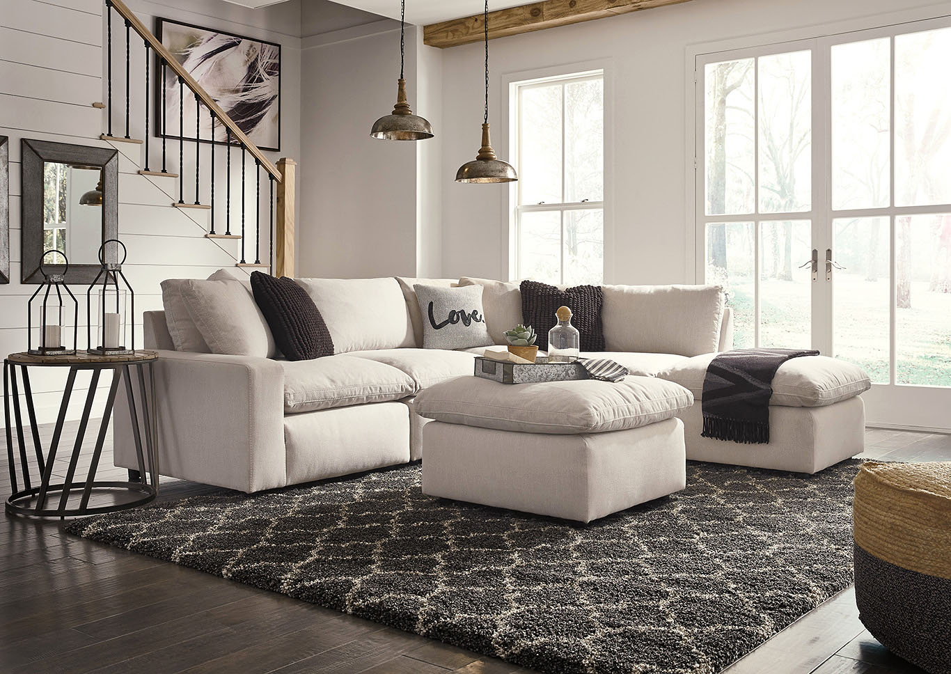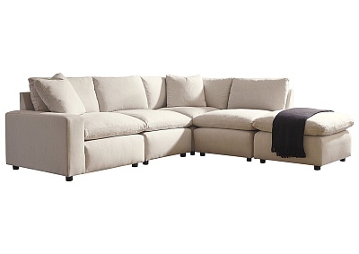 ASHLEY диван SAVESTO (коллекция AMERICAN LIFESTYLE).Стиль: американский Modern.Тип: диван пятисекционный включает:два кресла без подлокотников;одно угловое кресло(правое/левое);клин;оттоманку и две декоративные подушки в комплекте .Цвет: доступны кремовый/серый.Обивка: сложнофактурная ткань 100% полиэстер,категория высшая,одобрена по высоким американским стандартам качества AHFA(износостойкость,долговечность),подушки спины и сидений с пухо/перьевым наполнением.Размеры,мм:ш.2850/г.2640/в.940.