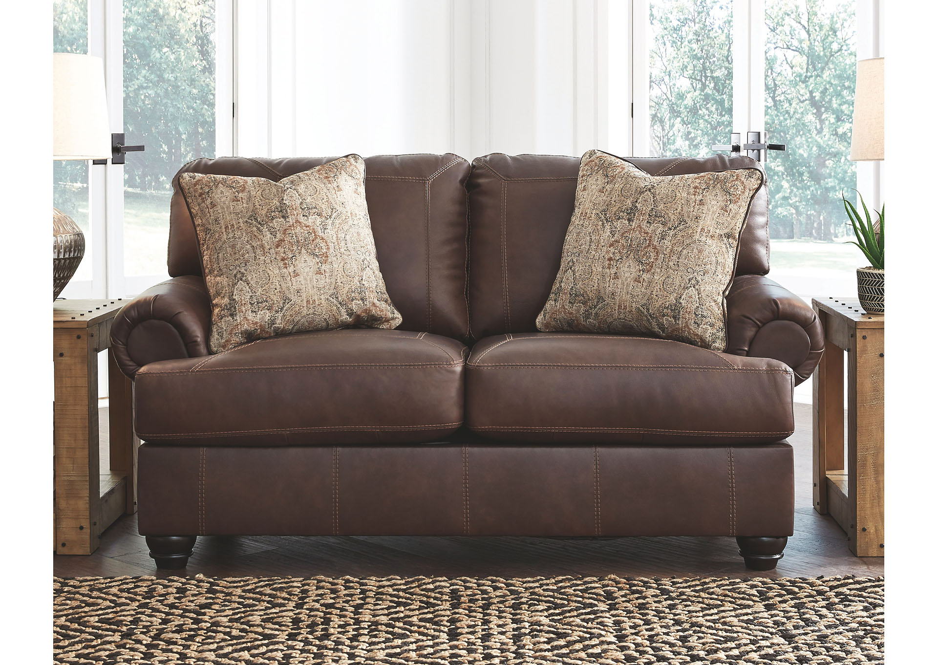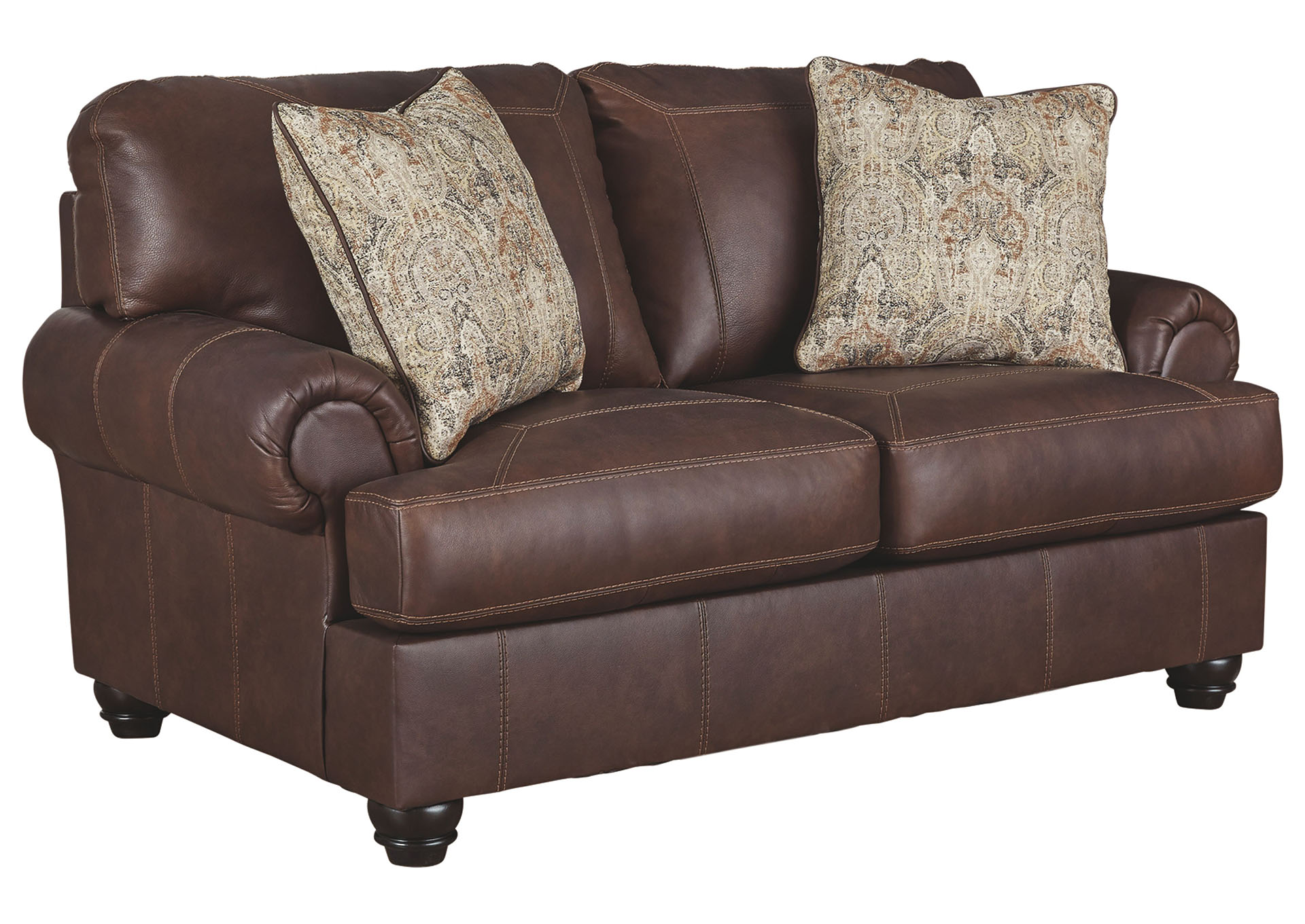 ASHLEY диван 2-М BEARMERTON ( коллекция AMERICAN LIFESTYLE).Стиль: американский Traditional.Тип: диван двухместный нераскладной,с двумя декоративными подушками в комплекте,на открытых шарообразных ножках.Цвет: коричневый .Обивка: тело( вся внутренняя часть) 100% кожа; корпус экокожа100% полиэстер,категория высшая,одобрена по высоким американским стандартам качества AHFA ( износостойкость,долговечность).Размеры,мм: ш.1880/г.1016/в.991.
