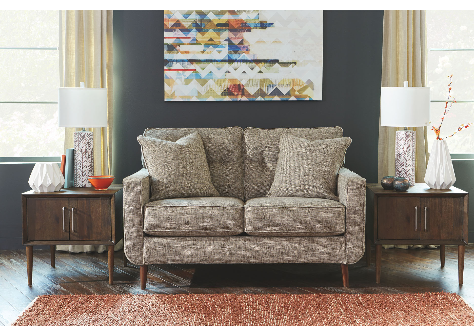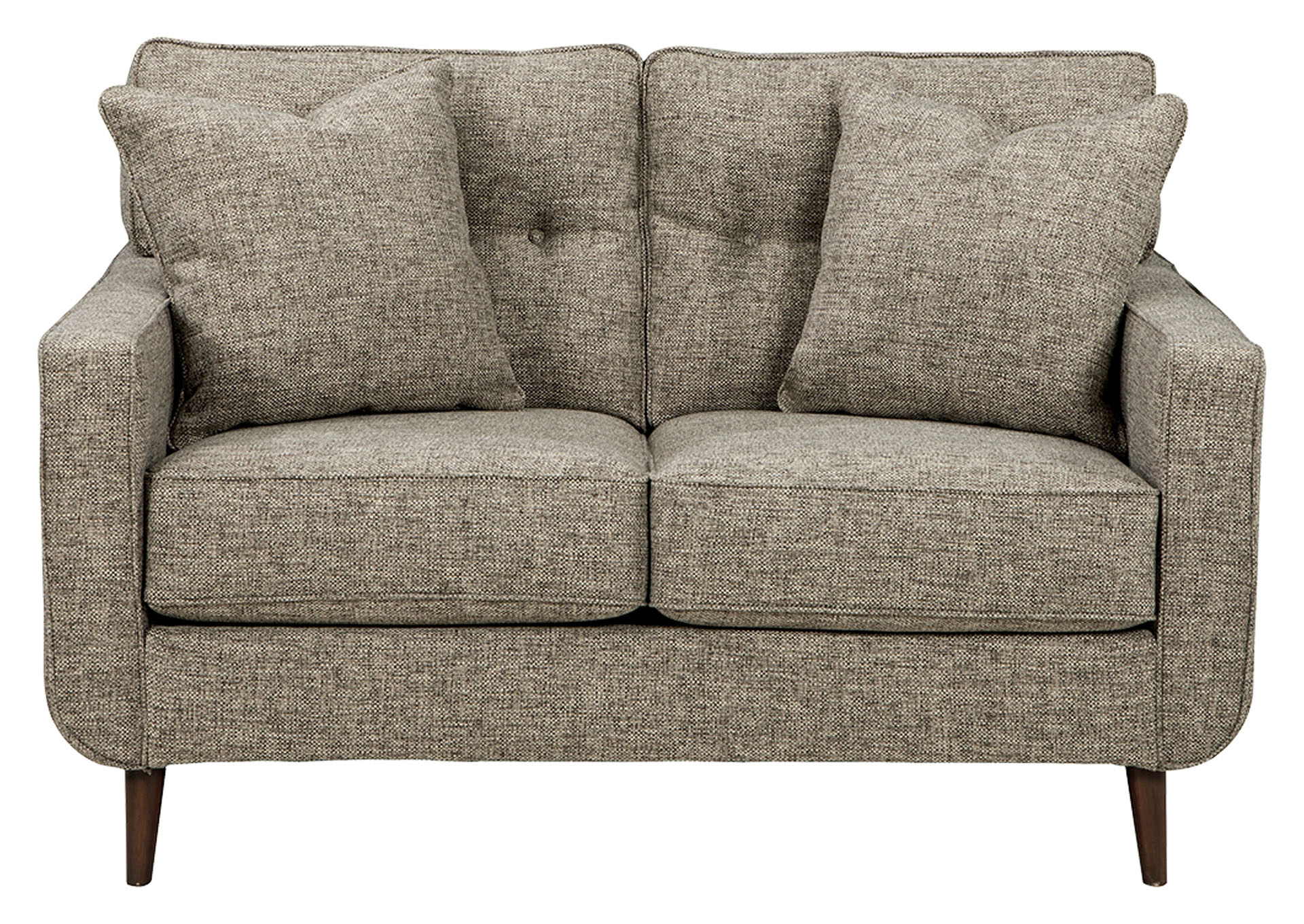 ASHLEY диван 2-М DAHRA (коллекция AMERICAN LIFESTYLE).Стиль: американский Modern.Тип: диван двухместный нераскладной с открытыми ножками и двумя декоративными подушками в комплекте.Цвет: бежевый.Обивка: сложнофактурная ткань 100% полиэстер,категория высшая,одобрена по высокому американскому стандарту качества AHFA(износостойкость,долговечность).Отделка: тафтинг пуговицами.Размеры,мм:ш.1448/г.965/в.965.