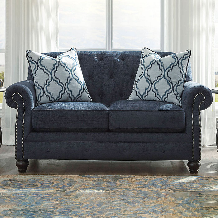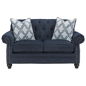 ASHLEY диван 2-М LAVERNIA ( коллекция AMERICAN LIFESTYLE).Стиль:американский Traditional.Тип: диван двухместный дизайн Chesterfield нераскладной с двумя декоративными подушками в комплекте.Цвет: синий.Обивка:сложнофактурная ткань,100% полиэстер,категория высшая,одобрена по высоким американским стандартам качества AHFA(износостойкость,долговечность).Отделка: тафтинг пуговицами;декоративные металлические мебельные гвозди.Размеры.мм:ш.1753/г.991/в.991.