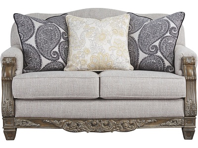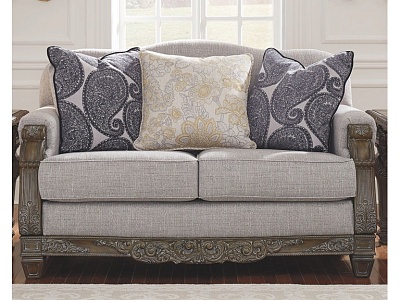ASHLEY диван 2-М SYLEWOOD ( коллекция AMERICAN LIFESTYLE). .Стиль: американский Grand Elegance.Тип: диван двухместный нераскладной с тремя декоративными подушками в комплекте.Цвет: серый .Обивка: сложнофактурная ткань, 90% полиэстер, 10% вискоза,категория высшая,одобрена по высоким американским стандартам качества AHFA(износостойкость,долговечность).Отделка: патенированная искусственно состаренная с белыми бликами, декоративные элементы из литой смолы. Размеры,мм:ш.1626/г.1041/в.1041.