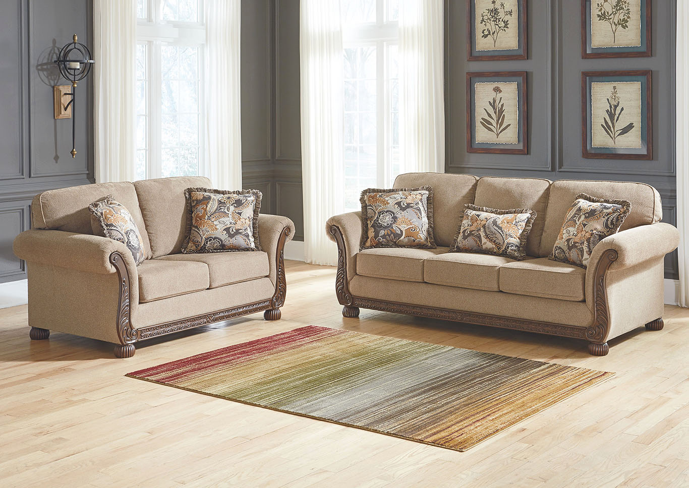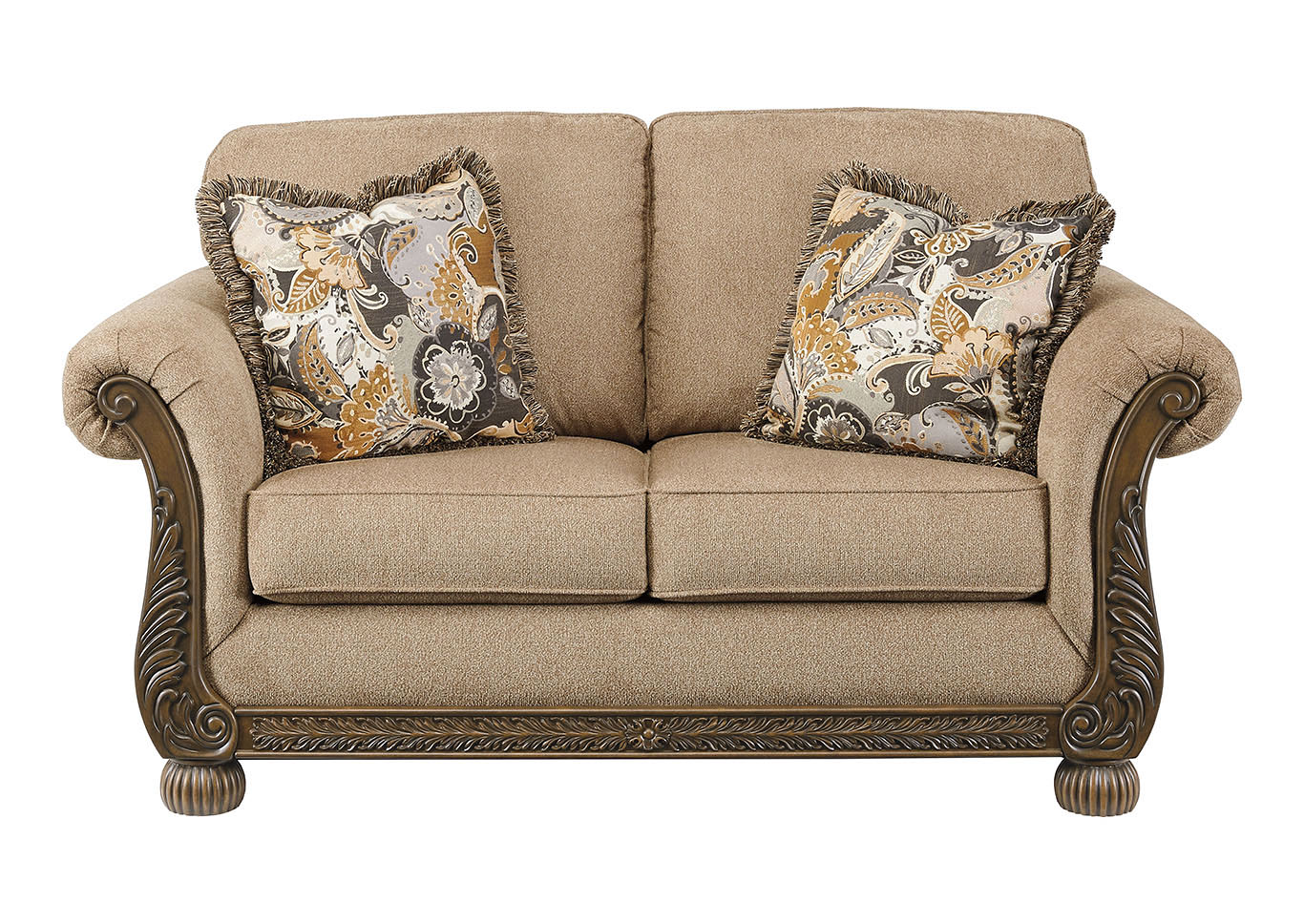 ASHLEY диван 2-М WESTERWOOD ( коллекция AMERICAN LIFESTYLE). .Стиль: американский Traditional .Тип: диван двухместный нераскладной с двумя декоративными подушками в комплекте.Цвет: светло-коричневый .Обивка: сложнофактурная ткань100% полиэстер,категория высшая,одобрена по высоким американским стандартам качества AHFA(износостойкость,долговечность).Отделка: декоративные элементы из литой смолы. Размеры,мм:ш.1753/г.965/в.965.