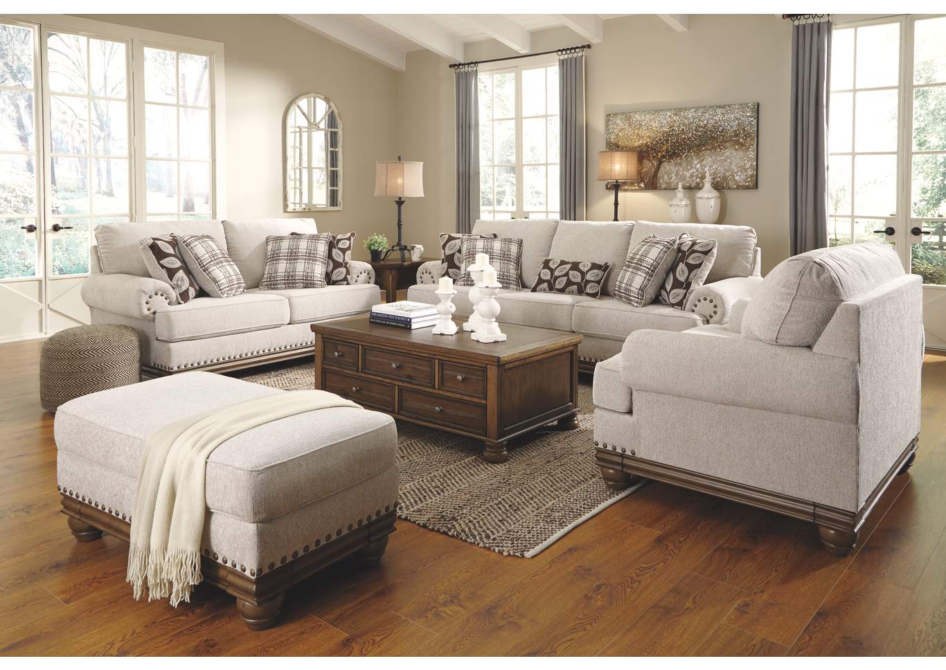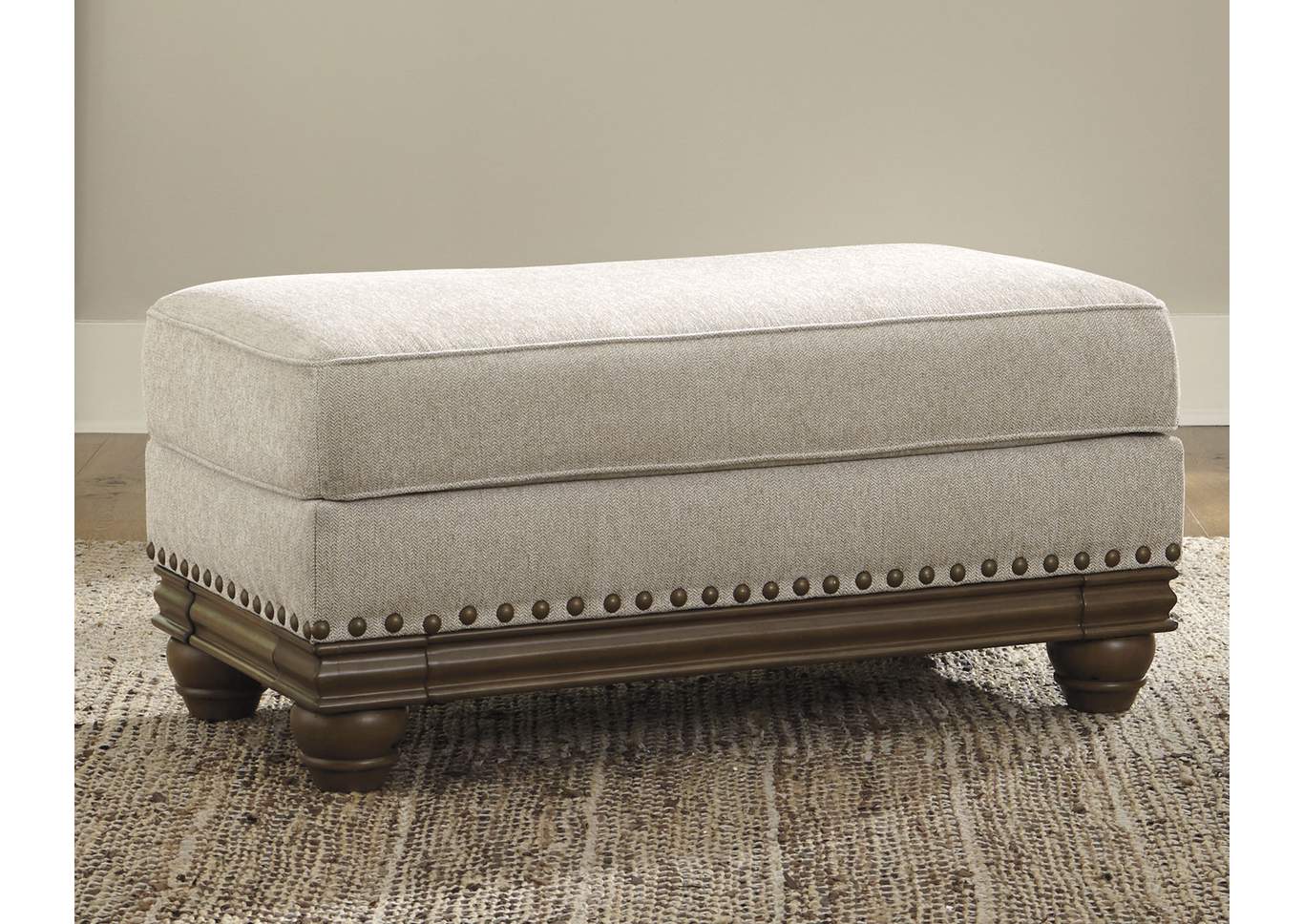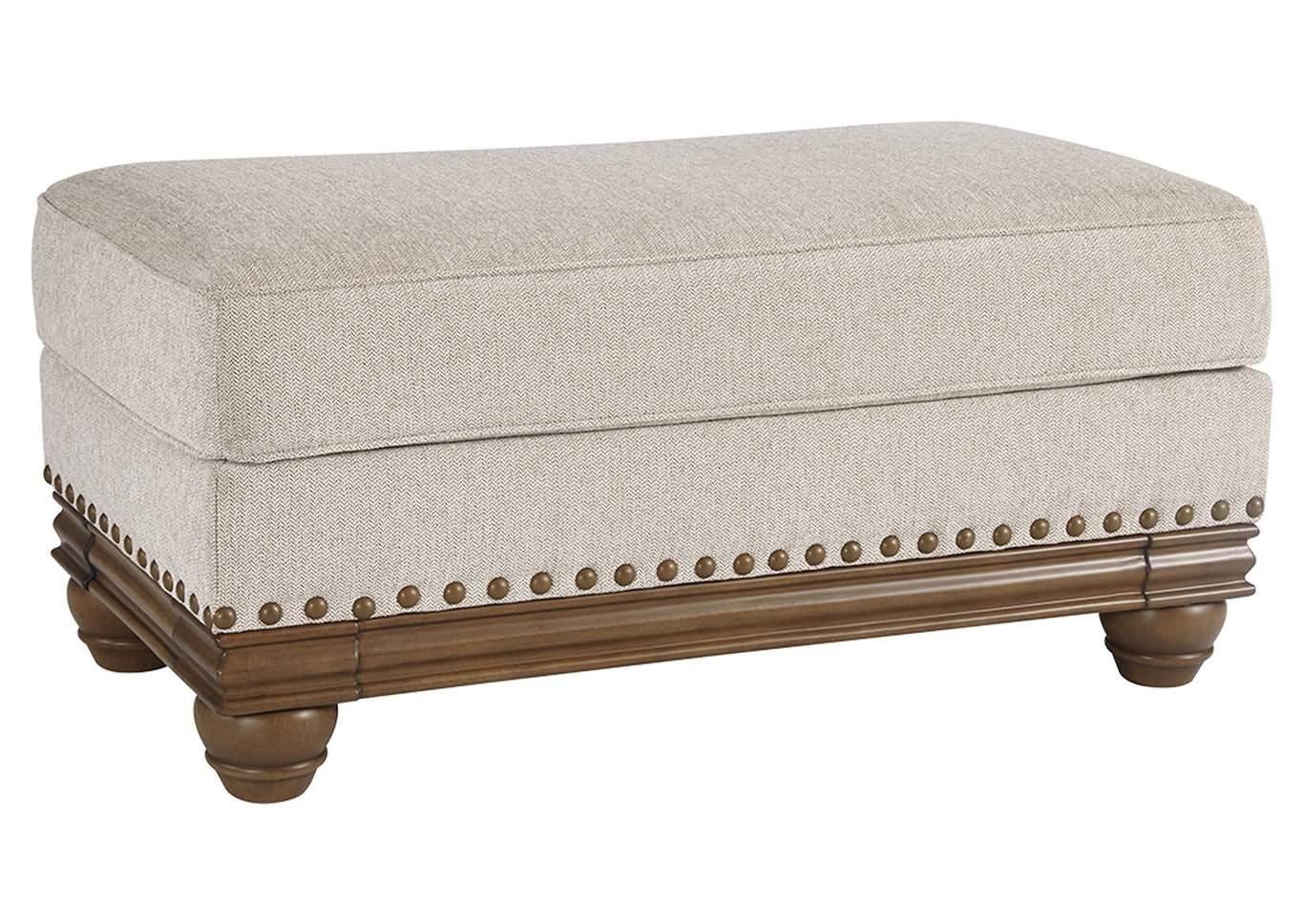 ASHLEY оттоманка HARLESON ( коллекция AMERICAN LIFESTYLE).Стиль: американский Traditional.Тип: мягкая оттоманка для гостиной.Цвет: бежевый.Обивка: сложнофактурная ткань,100% полиэстер,категория высшая,одобрена по высоким американским стандартам качества AHFA(износостойкость,долговечность).Отделка: декоративные металлические мебельные гвозди.Размеры.мм:ш.1100/г.600/в.500.