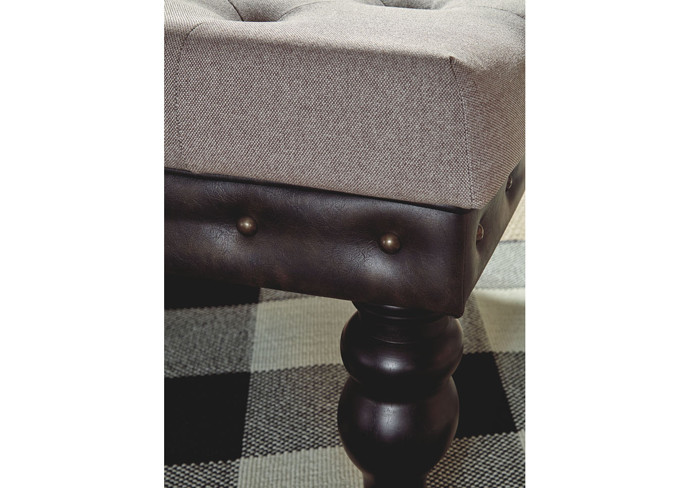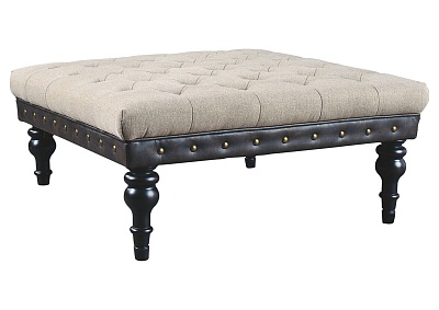 ASHLEY оттоманка MOONDUSK (коллекция AMERICAN LIFESTYLE).Стиль: американский Vintage Casual .Тип: крупногабаритная мягкая акцентная оттоманка с открытыми фигурными ножками.Цвет: бежевый/коричневый.Обивка: сложнофактурная ткань 100% полиэстер,экокожа,категория высшая,одобрена по высоким американским стандартам качества AHFA(износостойкость,долговечность).Отделка: тафтинговая подушка, металлические мебельные гвозди.Размеры,мм:ш.940/г.940/в.461.