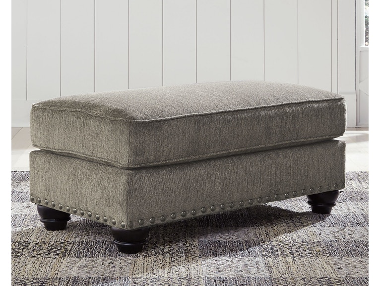 ASHLEY оттоманка SEMBLER ( коллекция AMERICAN LIFESTYLE).Стиль: американский Casual.Тип: крупногабаритная мягкая оттоманка для гостиной.Цвет: серый.Обивка: сложнофактурная ткань,100% полиэстер,категория высшая,одобрена по высоким американским стандартам качества AHFA(износостойкость,долговечность).Отделка: чёрные, никелированные, декоративные металлические мебельные гвозди.Размеры.мм:ш.1118/г.584/в.457.