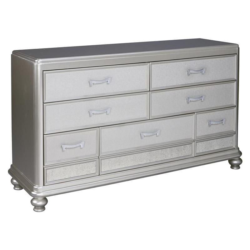 ASHLEY комод CORALAYNE(коллекция AMERICAN LIFESTYLE).Стиль: американский Traditional.Тип: комод для спальни широкий, с семью ящиками,три верхних из них,обиты фетром.Цвет: серебро.Отделка: металлический блеск,зеркальная окантовка,шагреневая текстура фасадов ящиков,хромированная фурнитура украшенная искусственным хрусталем.Размеры,мм:ш.1640/г.480/ш.980.