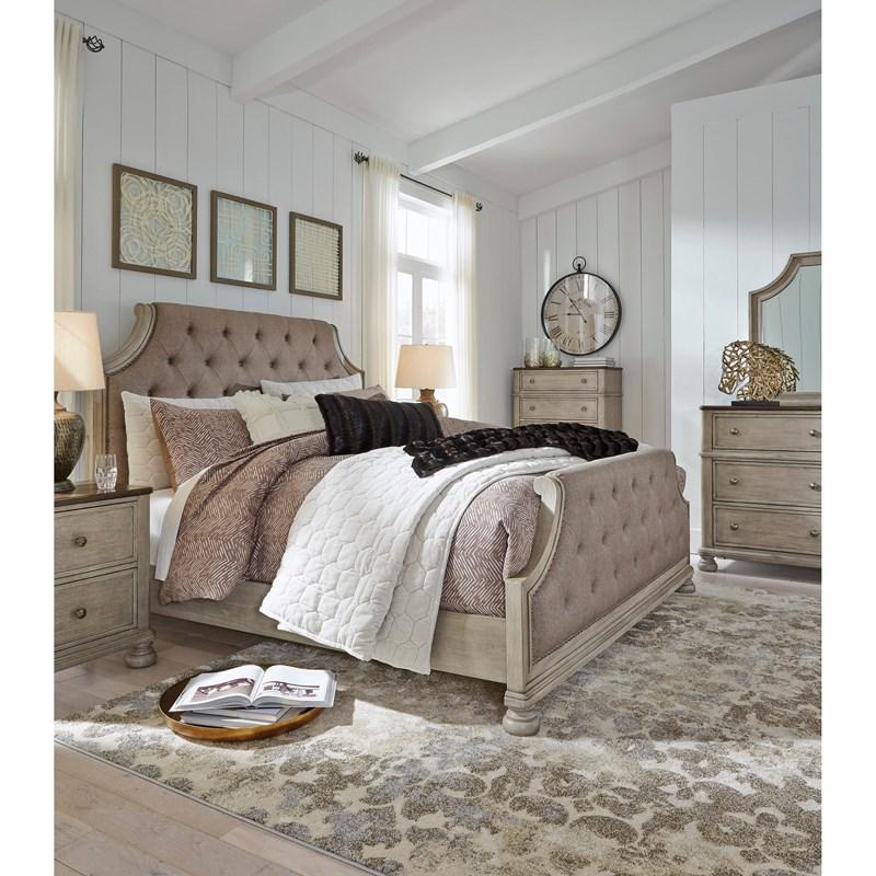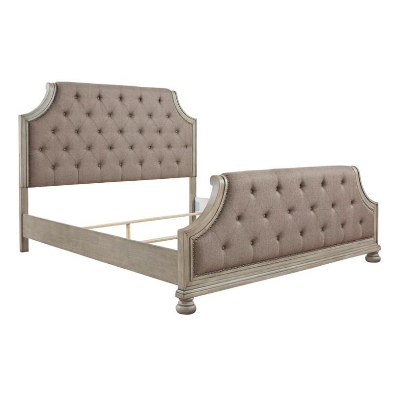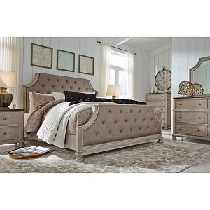 ASHLEY кроватьFALKHURST ( коллекция AMERICAN LIFESTYLE).Стиль: американский Traditional.Тип: панельная двуспальная кровать King Size с мягкими изголовьем и изножьем,размер спального места,мм: ш.1950/г.2050,ортопедическая решётка и матрас в стоимость не входят. Цвет: серый/коричневый.Обивка: сложнофактурная ткань 100% полиэстер,категория высшая,одобрена по высоким американским стандартам качества AHFA(износостойкость,долговечность).Отделка: шпон акации; стёжка "капитоне"; мебельные пуговицы.Размеры,мм:ш.2058/г.2311/в.1499.
