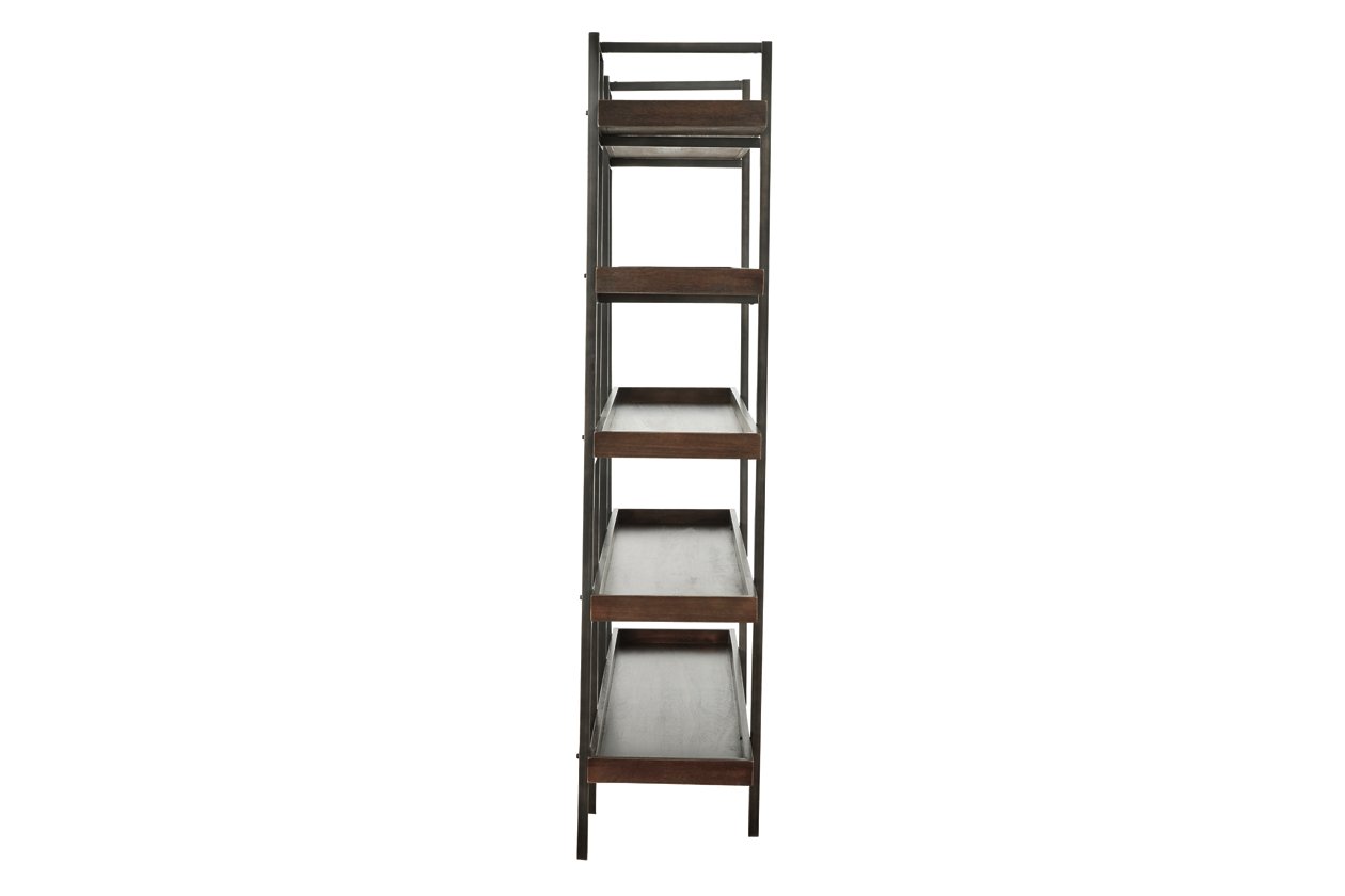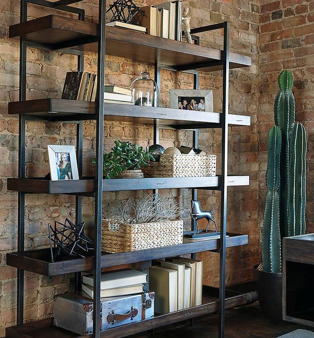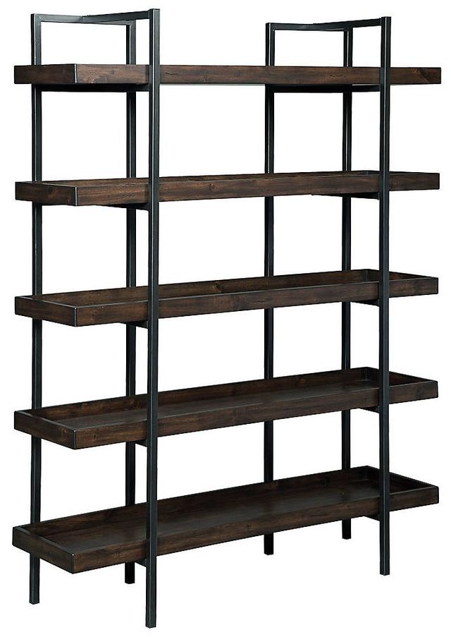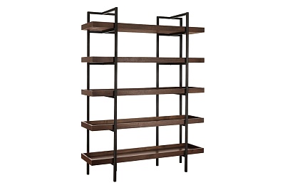 ASHLEY стеллаж STARMORE (коллекция AMERICAN LIFESTYLE).Стиль: американский Urbanology.Тип: многофункциональный стеллаж( книжная полка,витрина) с пятью фиксированными полками с бортами.Цвет: коричневый.Отделка: шпон акации,патенированный тёмно-серый мелаллический каркас.Размеры,мм:ш.1470/г.430/в.1930.