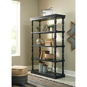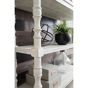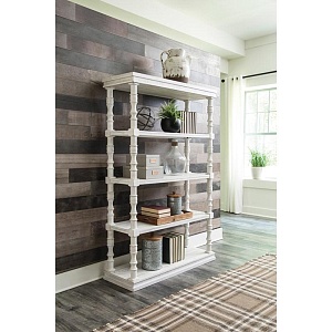 ASHLEY стеллаж DANNERVILLE (коллекция AMERICAN LIFESTYLE).Стиль: американский Casual.Тип: многофункциональный книжный стеллаж, c пятью фиксированными полками.Цвет: доступны: белый/чёрный.Отделка: искусственно состаренная; точёные детали.Размеры,мм:ш.1222/г.435/в.1883.