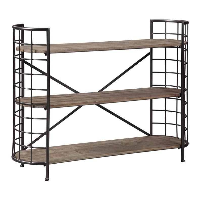 ASHLEY стеллаж FLINTLEY (коллекция AMERICAN LIFESTYLE).Стиль: американский Industrial Loft.Тип: многофункциональный акцентный стеллаж( книжный шкаф) с тремя фиксированными полками и открытой спиной.Цвет: коричневый.Отделка: изогнутая металлическая рама.Размеры,мм:ш.1060/г.362/в.819.