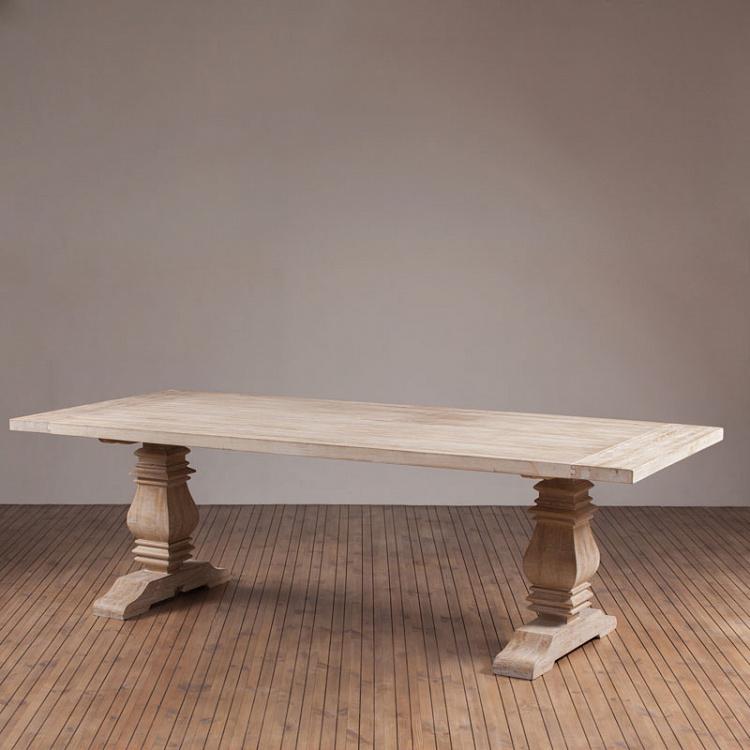 CAPITOL COLLECTION стол LEO DINING TABLE.Стиль: Provence.Тип: стол обеденный прямоугольный нераскладной на массивных резных ногах.Цвет: белый .Отделка: дерево CC Oak White - белёный дуб.Размеры,мм:ш.2440/г.1070/в.760.
