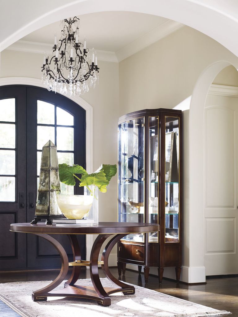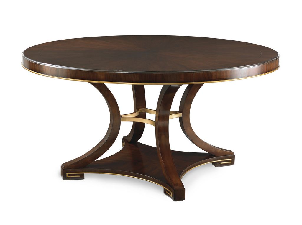 SCHNADIG стол ( коллекция St. James Place).Стиль: американский Art- Deco.Тип: обеденный нераскладной круглый стол.Цвет: коричневый.Отделка: двухцветный шпон,нижняя полка(510/510 мм).Размеры,мм:д.1520/в.770.