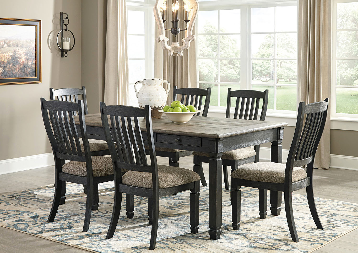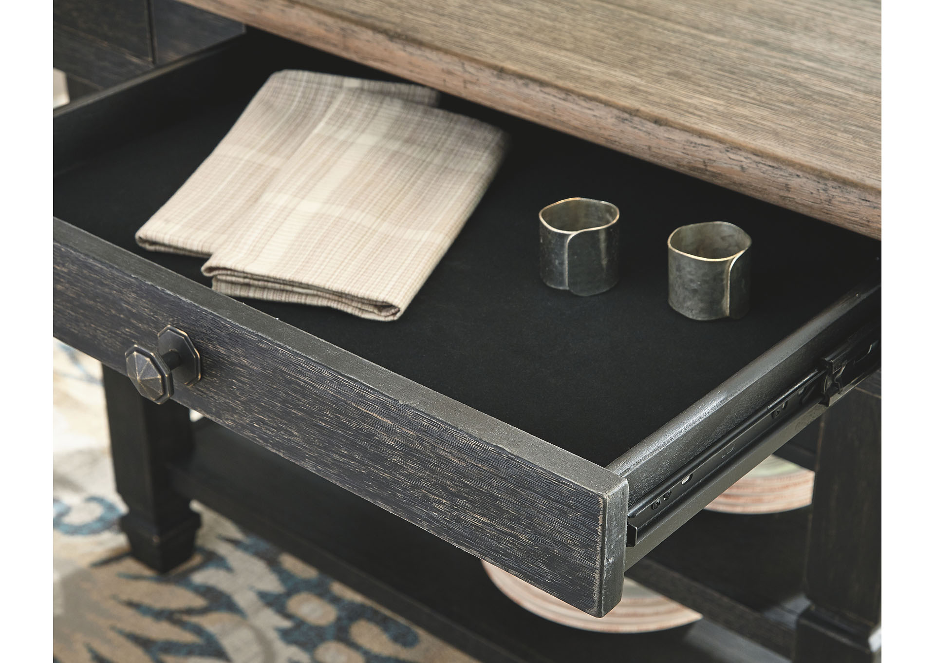 ASHLEY стол TYLER CREEK (коллекция AMERICAN LIFESTYLE).Стиль: американский Casual.Тип: стол обеденный прямоугольный нераскладной, с шестью выдвижными ящиками(по три с каждой стороны), на шесть пенрсон.Цвет: серо- коричневый/чёрный.Отделка: двухцветная текстурная; искусственно состаренный шпон дуба; дощатая столешница; металлическая фурнитура тёмно-бронзового цвета.Размеры,мм:ш.1830/г.1010/в.780.