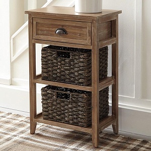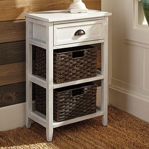 ASHLEY стол OSLEMBER (коллекция AMERICAN LIFESTYLE).Стиль: американский Casual.Тип: стол для хранения с одним выдвижным ящиком, двумя открытыми фиксированными полками и двумя плетёными корзинами.Цвет: доступны: белый/коричневый.Отделка: искусственно состаренная; бронзовая металлическая фурнитура.Размеры,мм:ш.457/г.305/в.705.