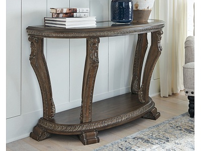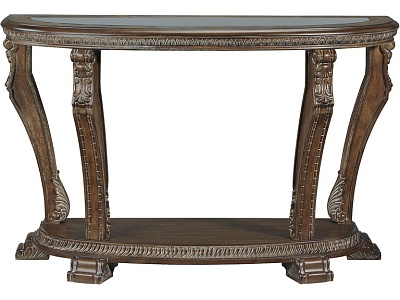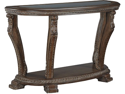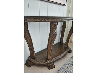 ASHLEY стол CHARMOND (коллекция AMERICAN LIFESTYLE).Стиль: американский Grand Elegance.Тип: консольный стол,с одной открытой фиксированной полкой.Цвет: коричневый.Отделка: шпон дуба с белыми бликами,декоративные элементы из литой смолы,термостекло.Размеры,мм:ш.1219/г.483/в.762.