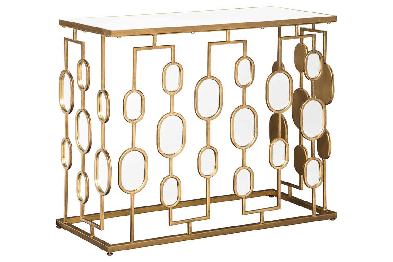 ASHLEY стол MAJACI (коллекция AMERICAN LIFESTYLE).Стиль:американский Modern .Тип: консольный акцентный стол.Цвет:золотой.Отделка: античное золото,зеркальные элементы.Размеры,мм:ш.914/г.406/в.759.