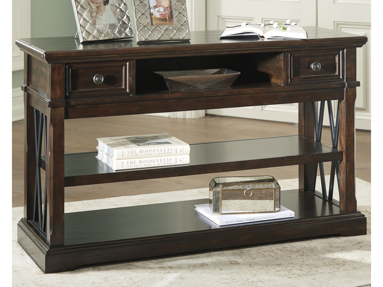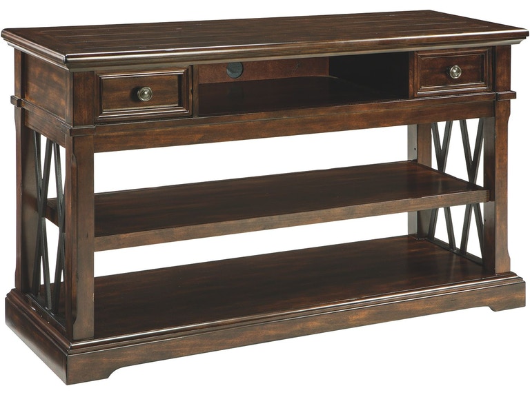 ASHLEY стол RODDINTON (коллекция AMERICAN LIFESTYLE).Стиль: американский Traditional.Тип: консольный стол с двумя выдвижными ящиками и одной открытой регулируемой полкой.Цвет: коричневый.Отделка: двойные Х-образные бронзовые концевые панели.Размеры:ш.1270/г.432/в.762.