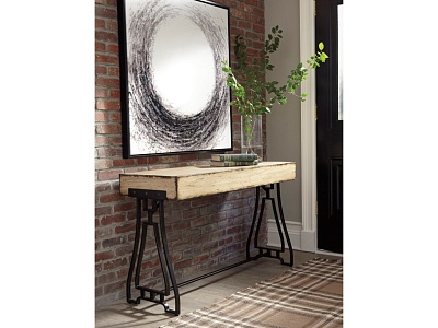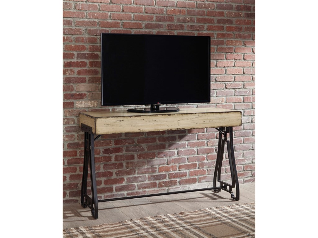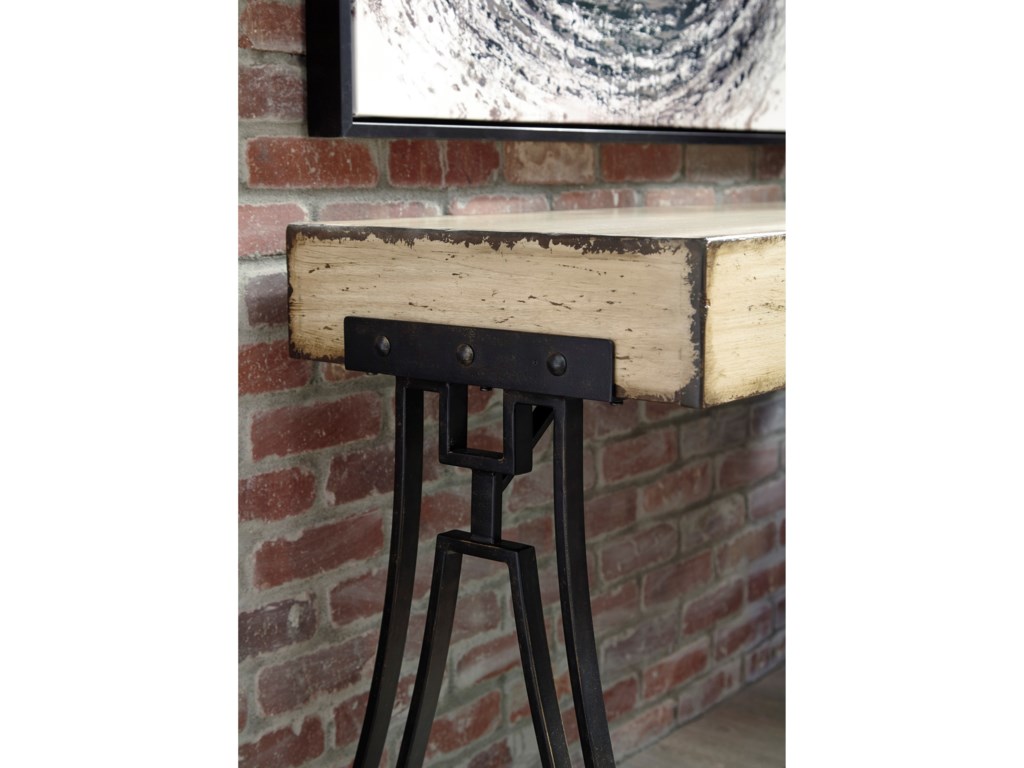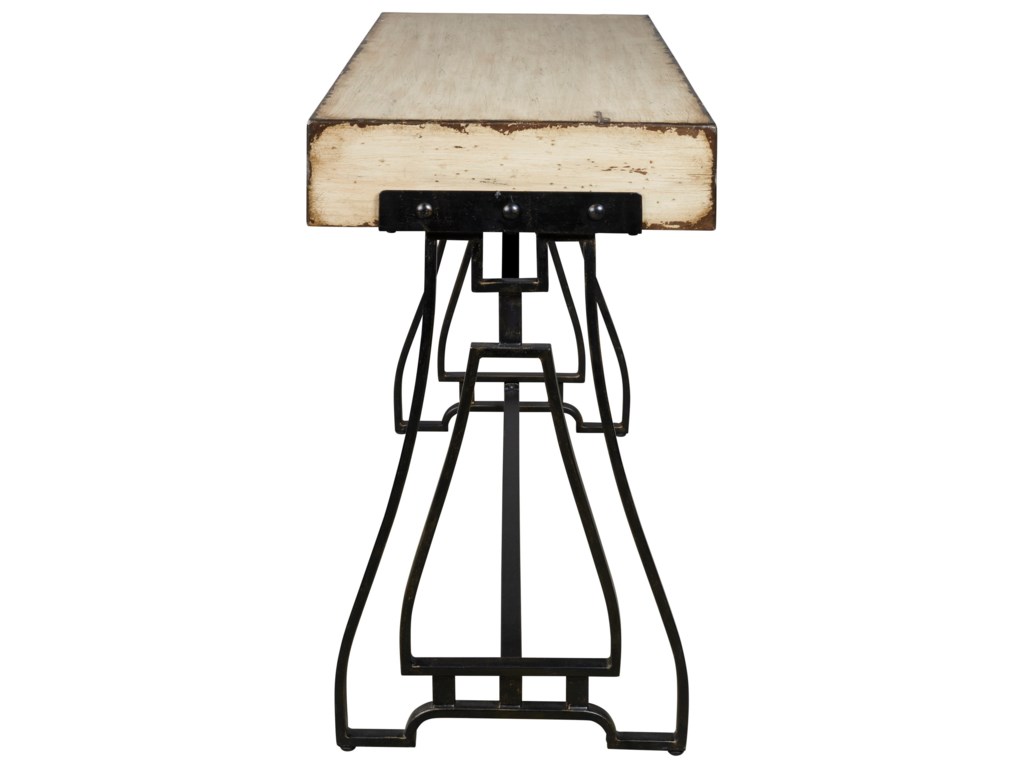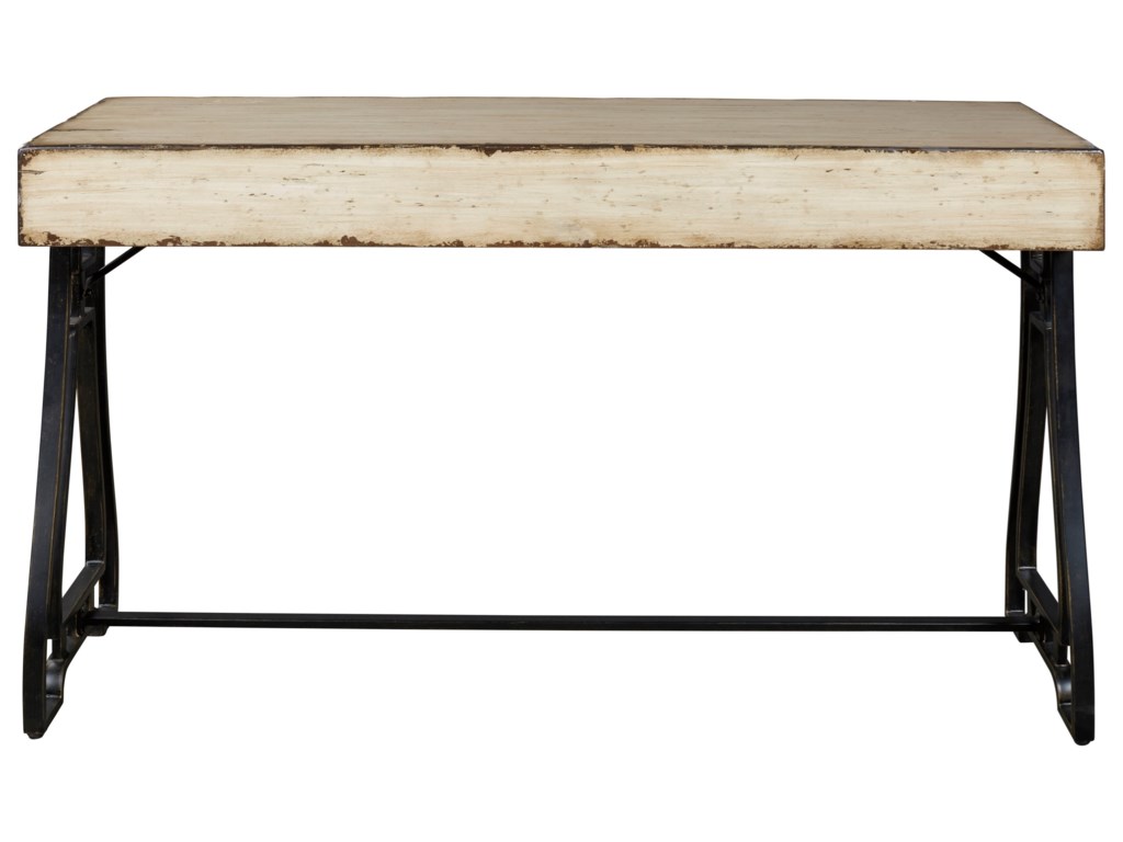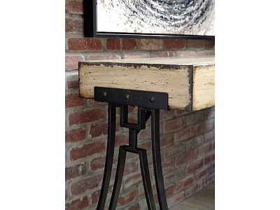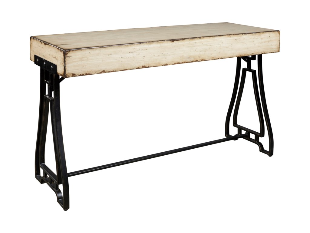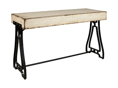 ASHLEY стол VANPORT(коллекция AMERICAN LIFESTYLE).Стиль: американский Vintage Casual.Тип: акцентный консольный стол на открытом металлическом основании,геометрического дизайна.Цвет: кремовый.Отделка: искусственно состаренная патинированная;античная бронза.Размеры,мм:ш.1270/г.457/в.762.