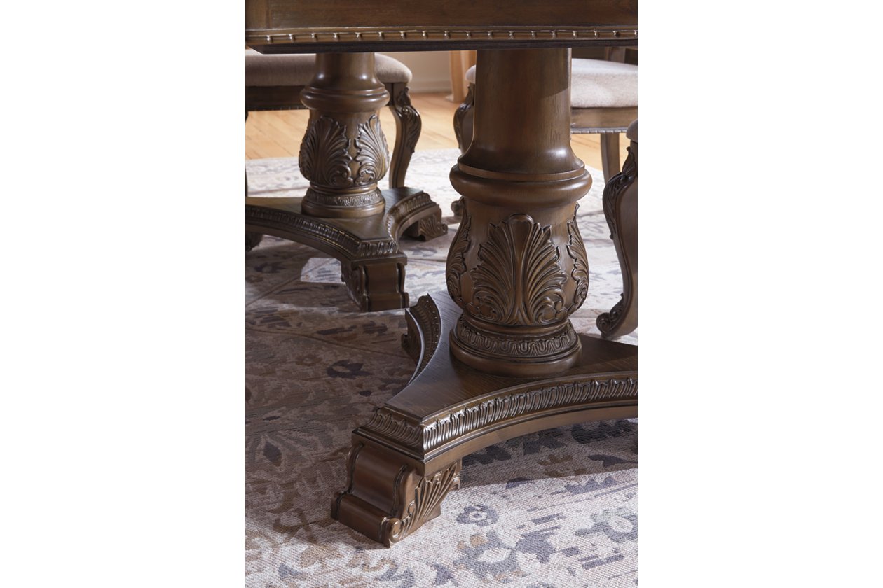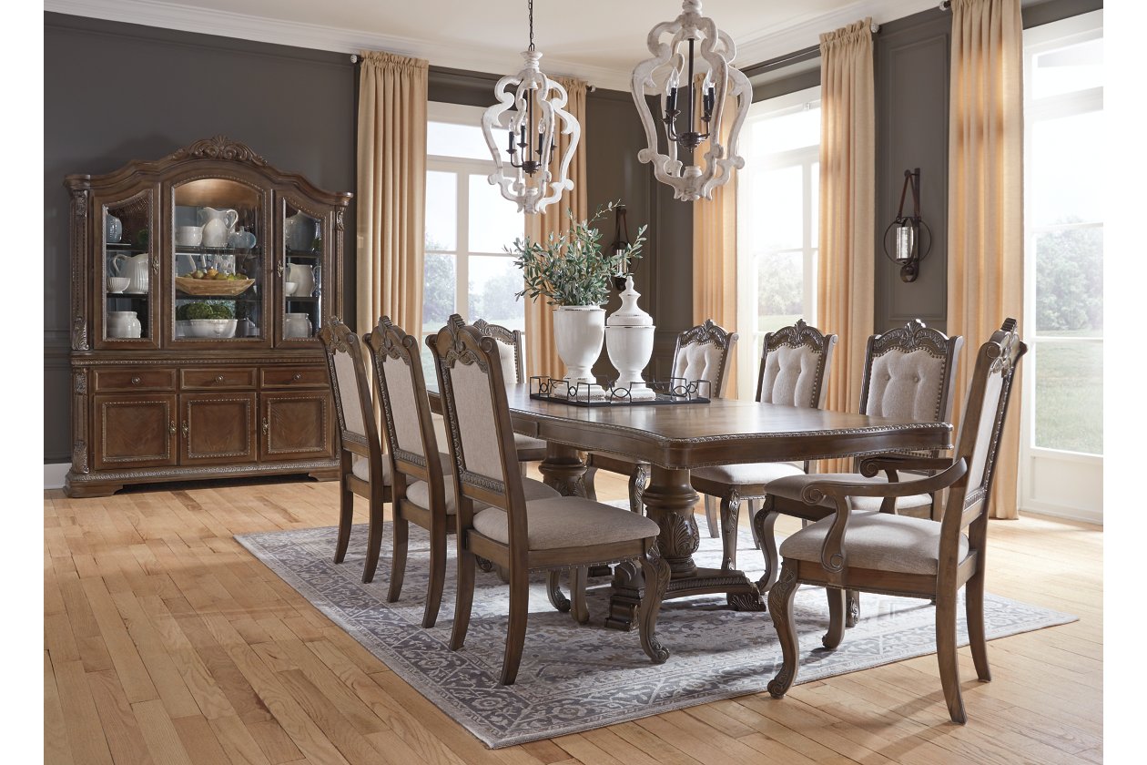 ASHLEY стол CHARMOND(коллекция AMERICAN LIFESTYLE).Стиль: американский Grand Elegance.Тип: раскладной обеденный стол на десять персон,размер в разложенном виде,мм:ш.2708.Цвет: коричневый с белыми бликами.Отделка: патинированный шпон дуба,акценты из литой смолы.Размеры,мм:ш.1800/г.1108/в.860.