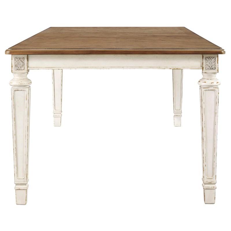ASHLEY стол REALYN (коллекция AMERICAN LIFESTYLE).Стиль: американский Vintage Casual.Тип: стол обеденный раскладной прямоугольный, на восемь персон,размер в разложенном виде,мм:ш.2440.Цвет: белый,коричневый.Отделка:патинированная двухцветная, искусственно состаренная,столешница шпон дуба и берёзы.Размеры,мм:ш.1980/г.1073/в.762.