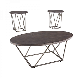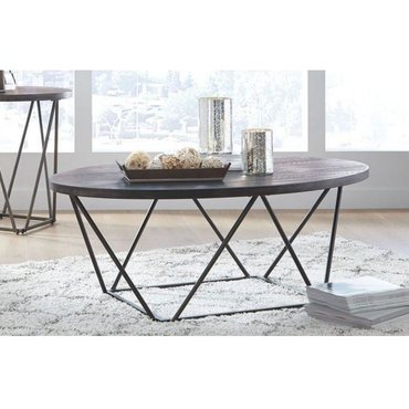 ASHLEY стол NEIMHURST (коллекция AMERICAN LIFESTYLE).Стиль: американский Modern.Тип: овальный журнальный стол с металлическим основанием в виде мостовой фермы.Цвет: серо/коричневый.Отделка: текстурный шпон вяза.Размеры,мм: ш.1213/г.711/в.464.