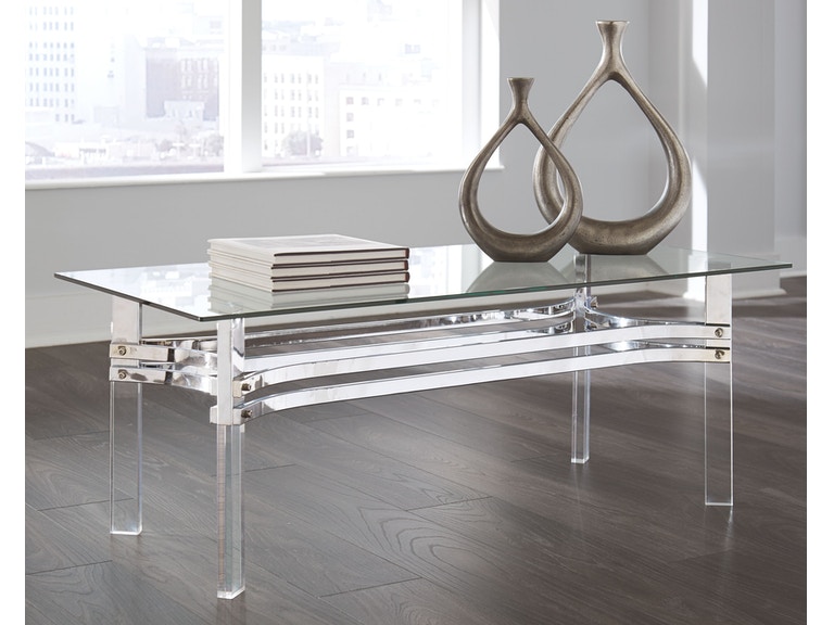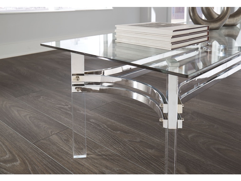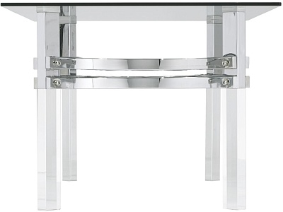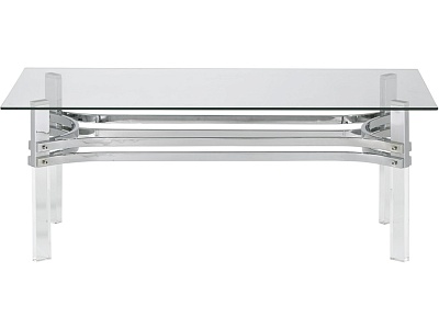 ASHLEY стол BRADDONI (коллекция AMERICAN LIFESTYLE).Стиль: американский Modern.Тип: прямоугольный стеклянный журнальный стол с акрилово/металлическим основанием.Цвет: прозрачный.Отделка: термостекло, хромированные металлические акценты .Размеры,мм: ш.1194/г.584/в.457.