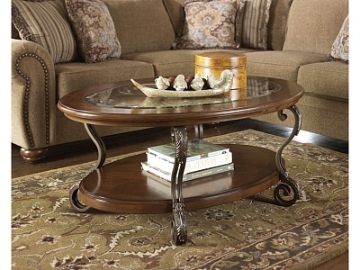 ASHLEY стол NESTOR (коллекция AMERICAN LIFESTYLE).Стиль: американский New Traditions.Тип: овальный журнальный стол с одной открытой фиксированной полкой и гнутыми металлическими ножками .Цвет:коричневый.Отделка:термополированное стекло с фацетом,литой вензель,тёмная матовая бронза.Размеры,мм:ш.1216/г.865/в.510.
