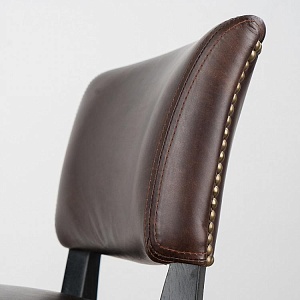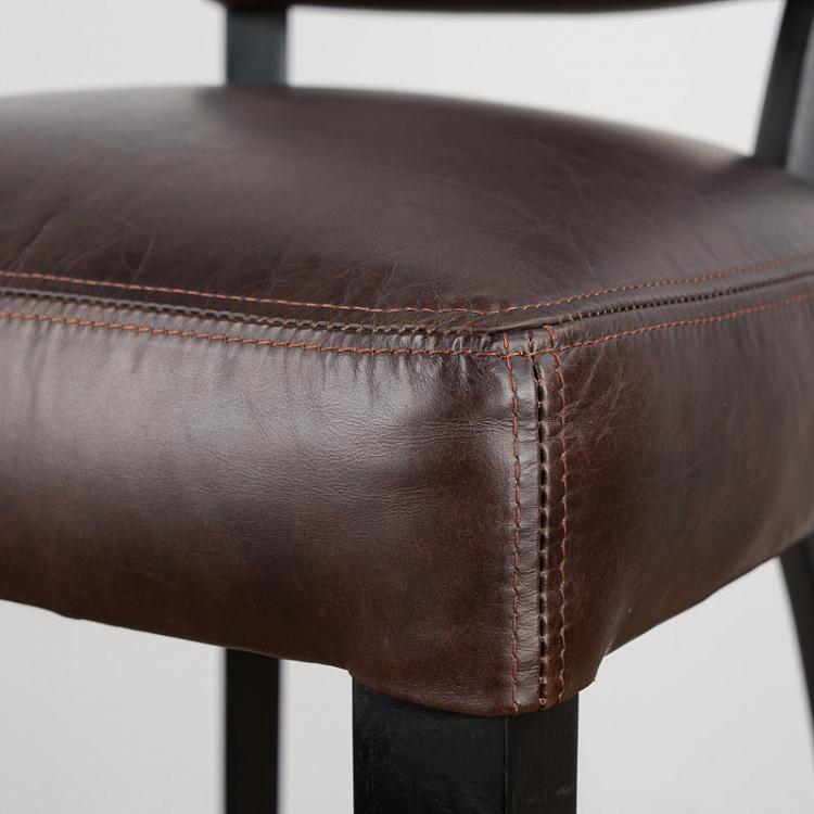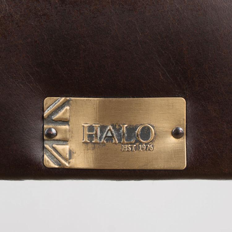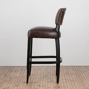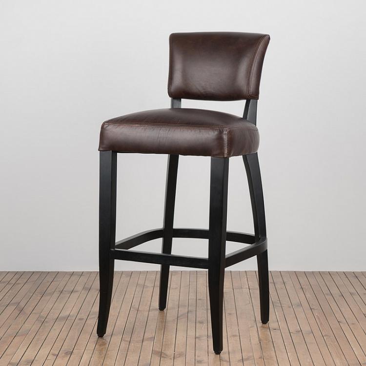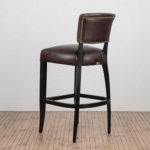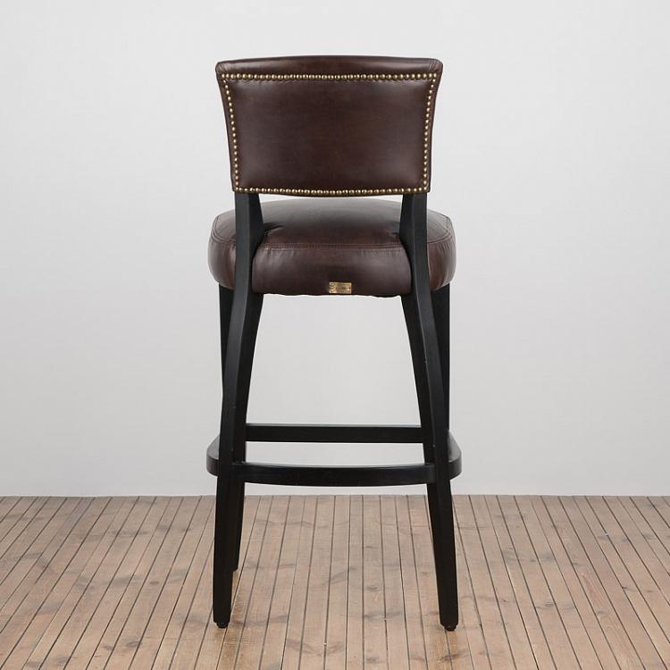 HALO EST.1976 стул MIMI BARSTOOL ( дизайн Timothy Oulton).Стиль: British classic.Тип: высокий мягкий барный стул с тёмными ножками.Цвет: тёмно- коричневый.Обивка:100% кожа Antique Tobacco - мягкая и прочная состаренная анилиновая кожа буйвола уникальной ручной выделки тёмно- коричневого цвета.Отделка: каучуковое дерево; латунные мебельные гвозди.Размеры,мм: ш.480/г.540/в.1080.